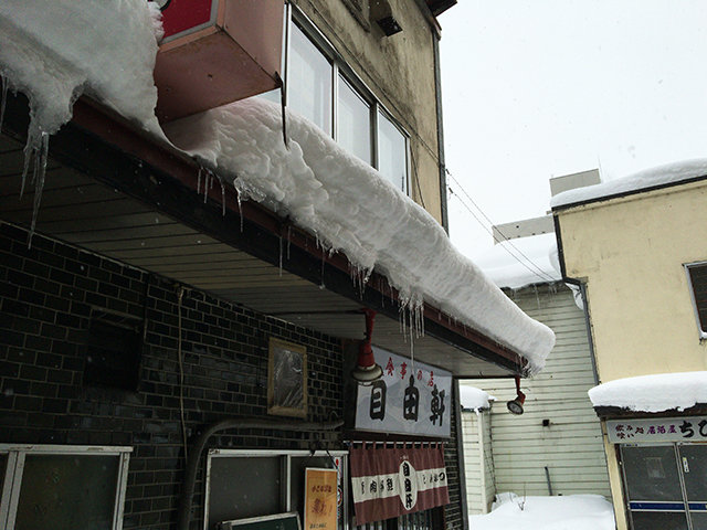 並ぶ際には頭上落雪注意です。