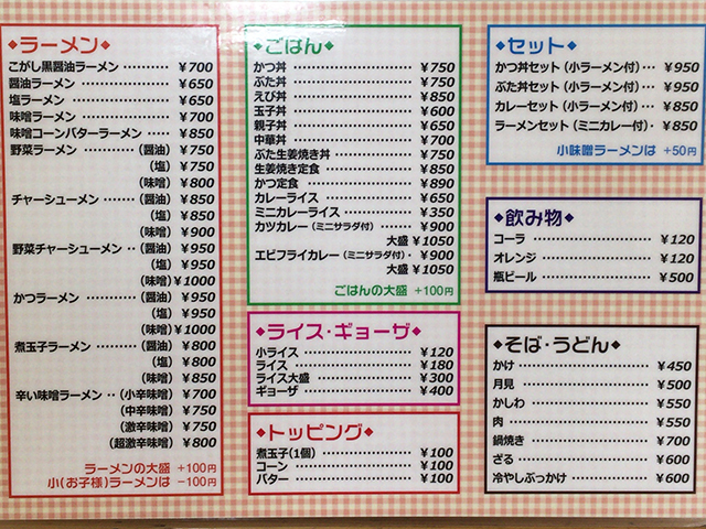 まずはメニュー表を確認してみましょう!