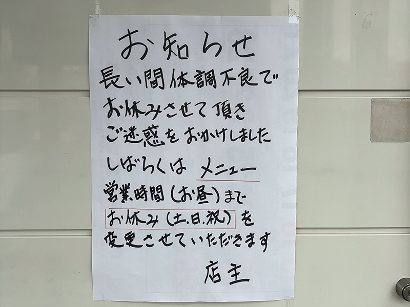 今年の冬は店主が入院されていたためずっと休業されていました。