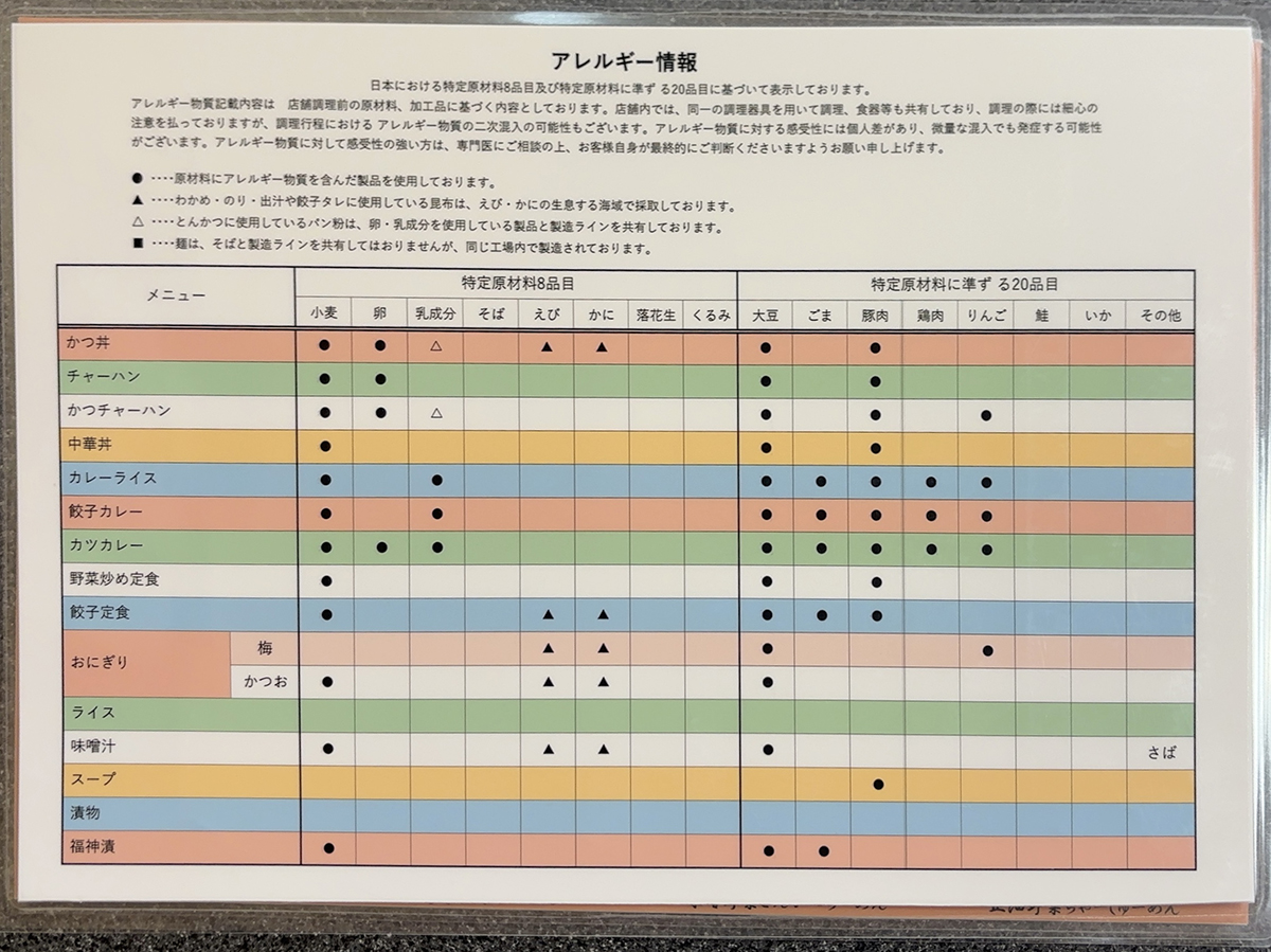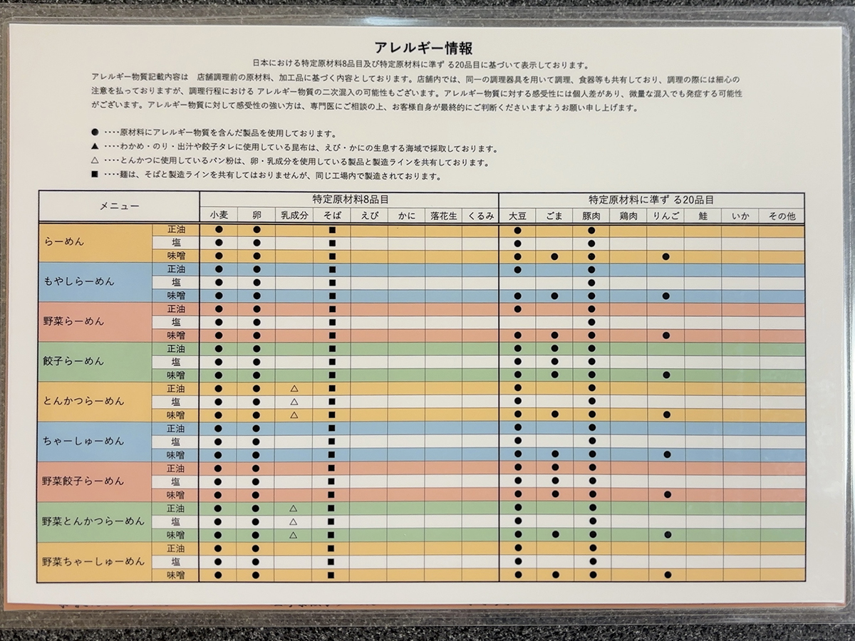まずはメニュー表を確認してみましょう。
