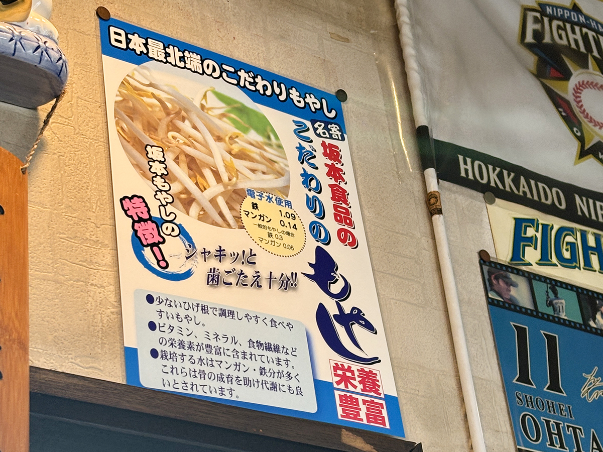 もやしは名寄・坂本食品製。日本最北端のもやしなんですねー。