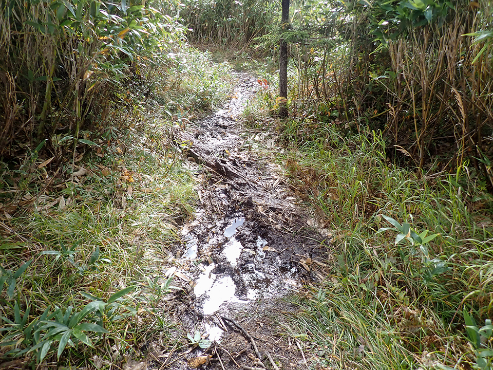 ドロドロやぐちゃぐちゃ、深い水たまりのある樹林帯です。