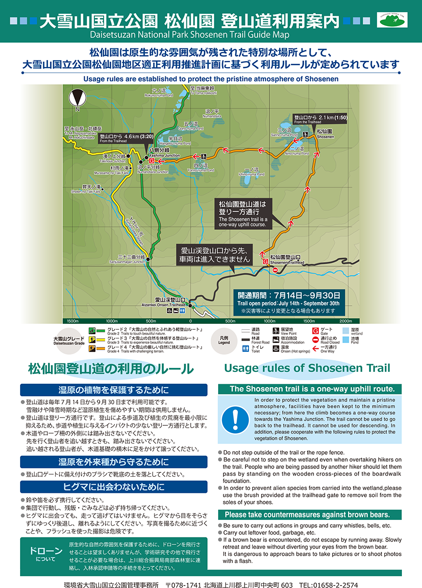 大雪山グレード4「大雪山の厳しい自然に挑む登山ルート」に設定されています。