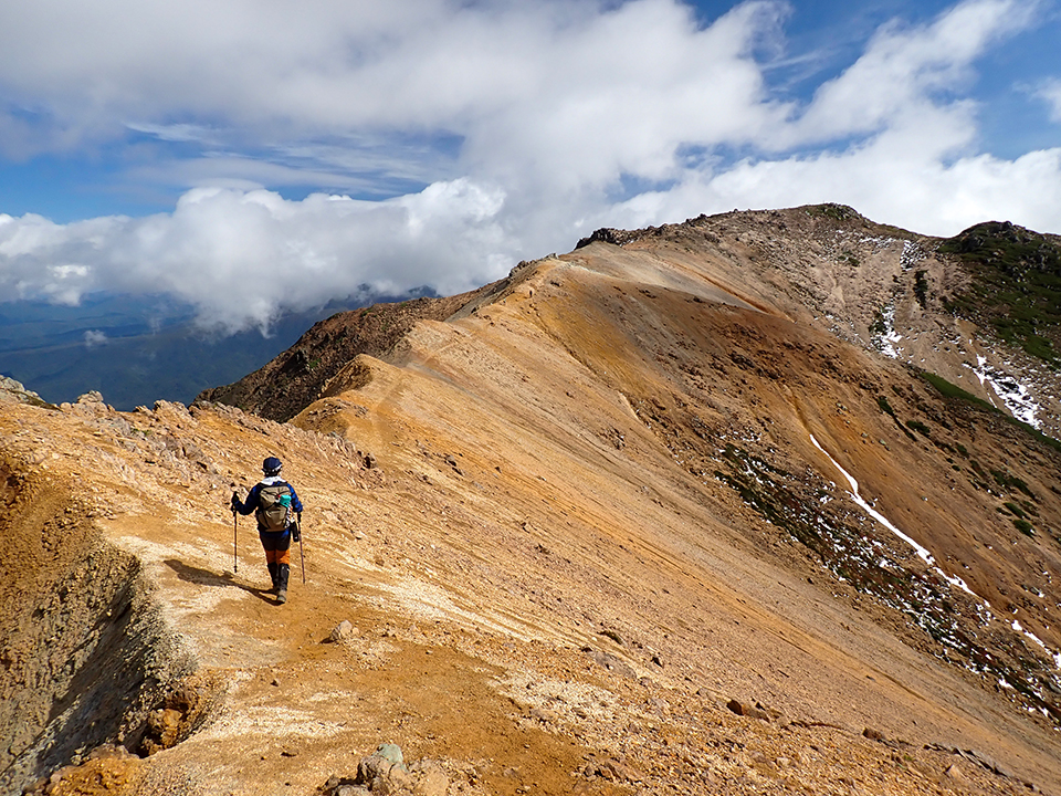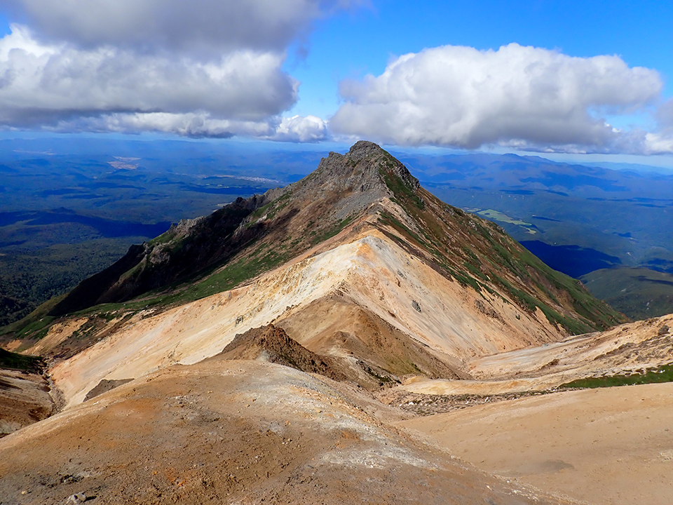 我が国最北の2,000m峰で、荒々しく厳つい山容です。