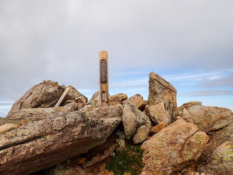 三等三角点「三方崩」2112.69m。この山容にぴったりな三角点名ですね。