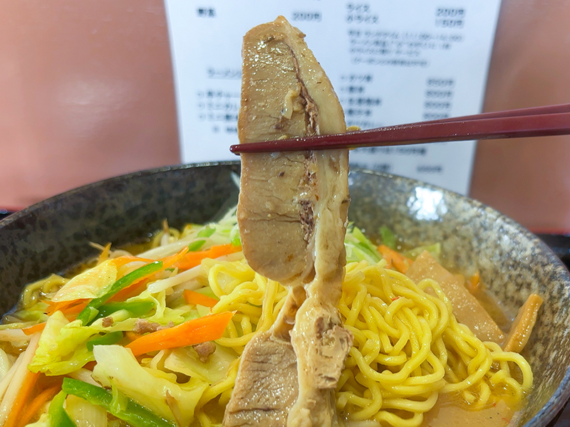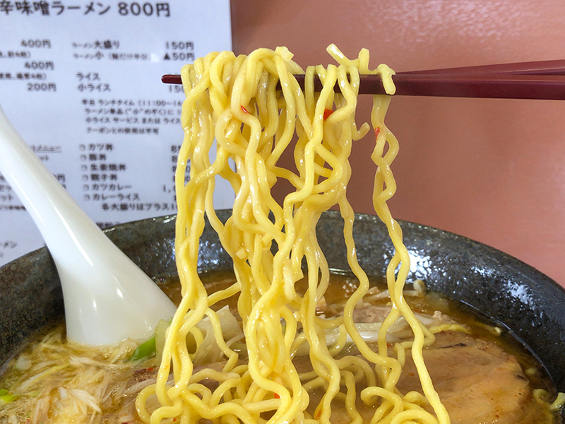ほんのり甘みのあるスープは味噌で食わせてくれるタイプです。醤油は若干物足りなさを感じるものでしたが、これはしっかりとした満足感を与えてくれます