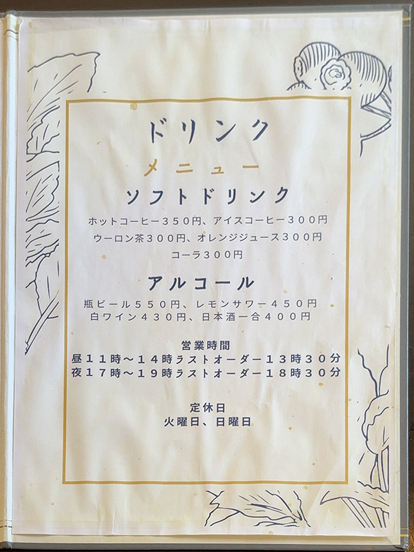 営業時間 11:00〜14:00、17:00〜20:00(LO19:30)
