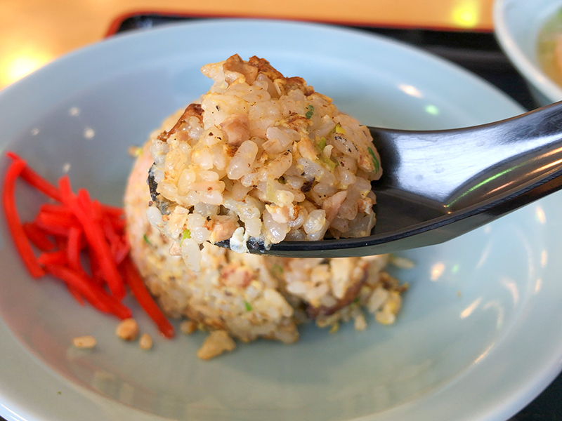 チャーハンはややしっとり系で丁度よい味の濃さ。賽の目切りのチャーシューと紅生姜がまた良い仕事してます!