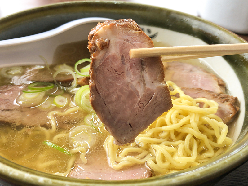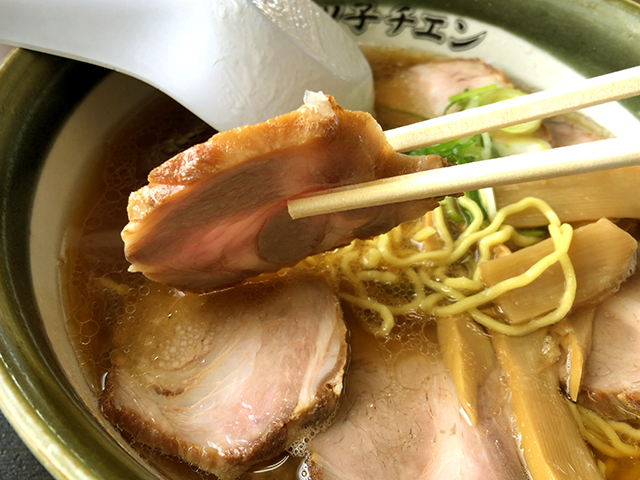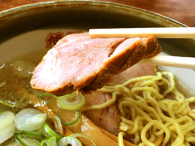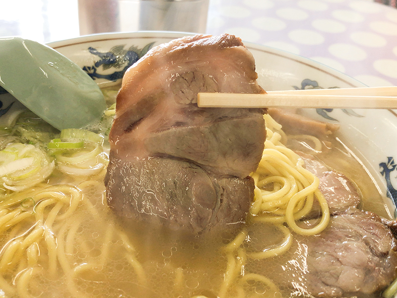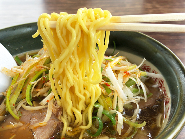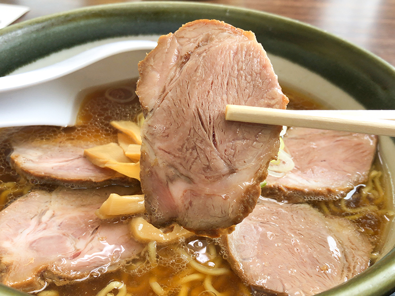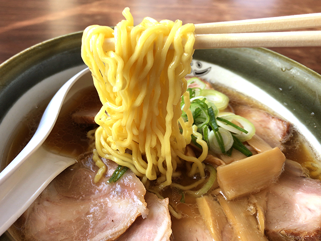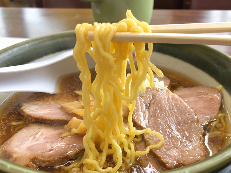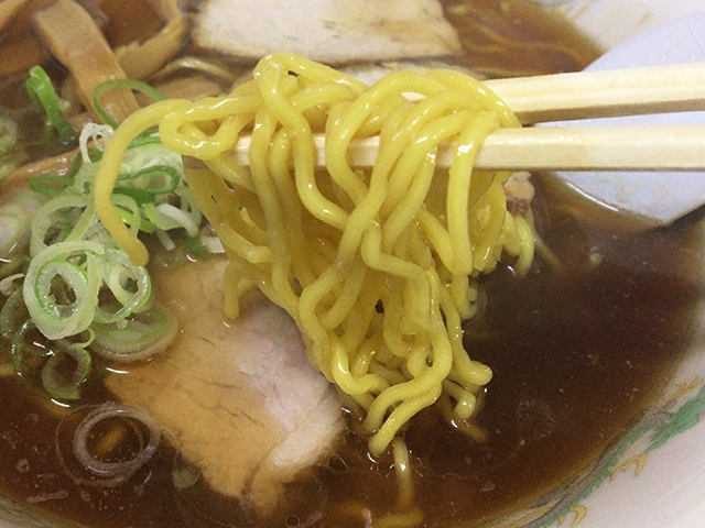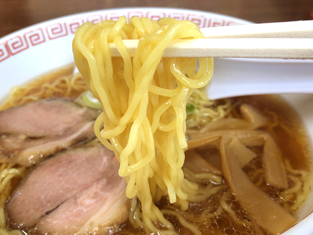 カドがきれいに取れた豊かな醤油の味わい。甘みも感じられる熱々あっさりスープです。あっさりしているもののしっかりとしたコクが感じられ美味い。チャーシューは繊維質なものではないが程よい歯ごたえ。少々固ゆでの麺は藤原製麺でしょう。