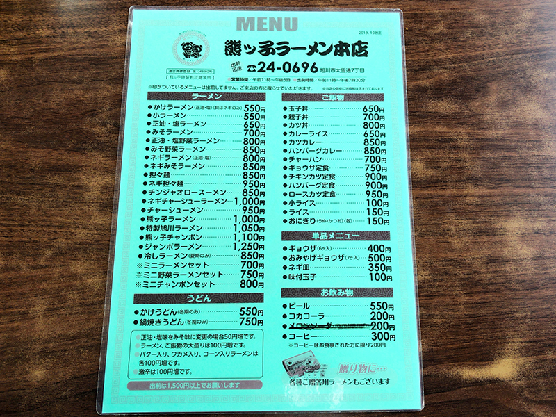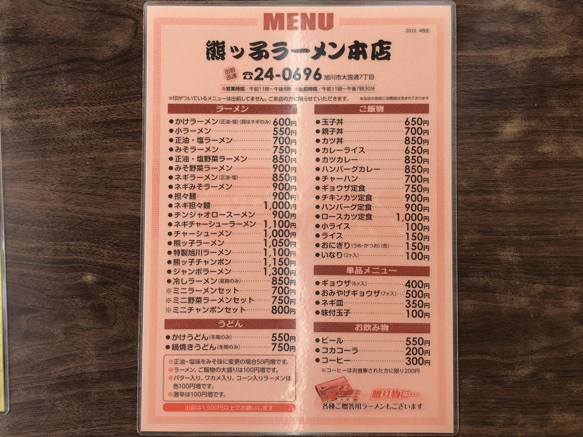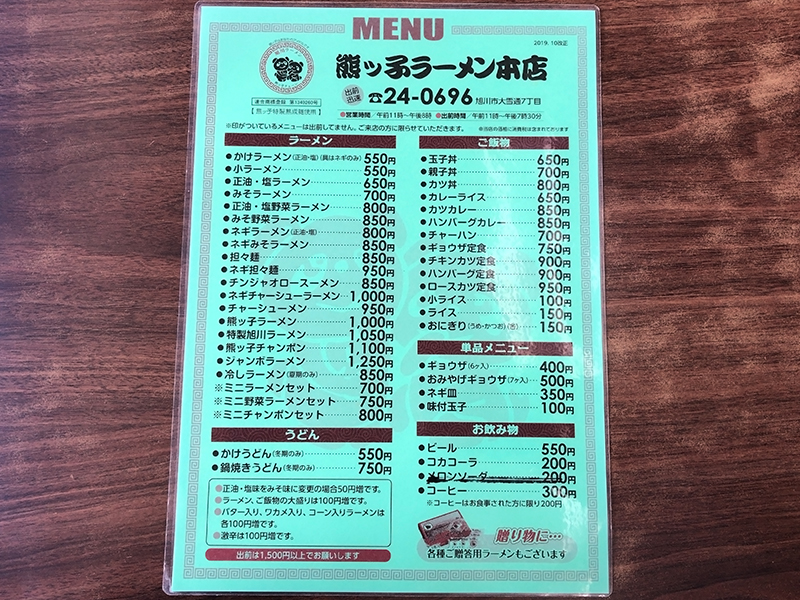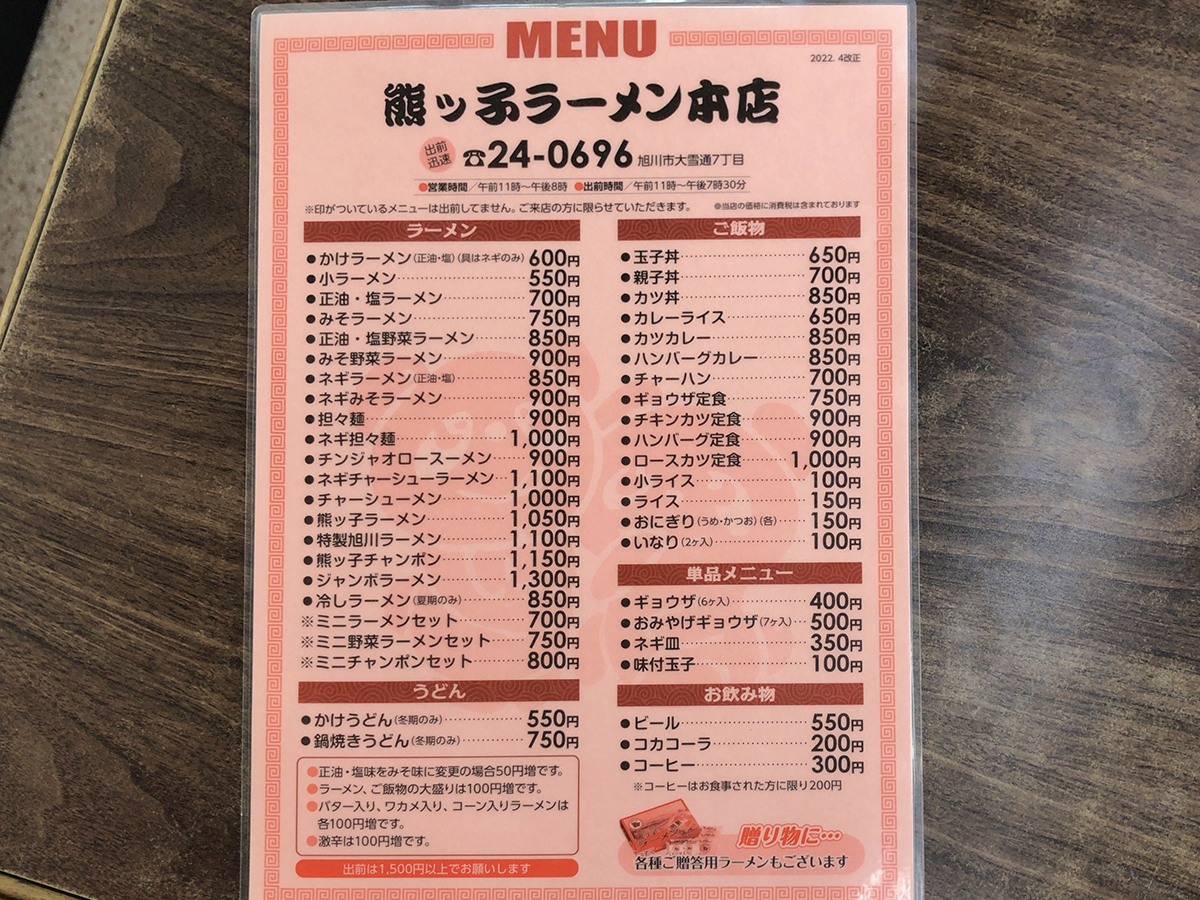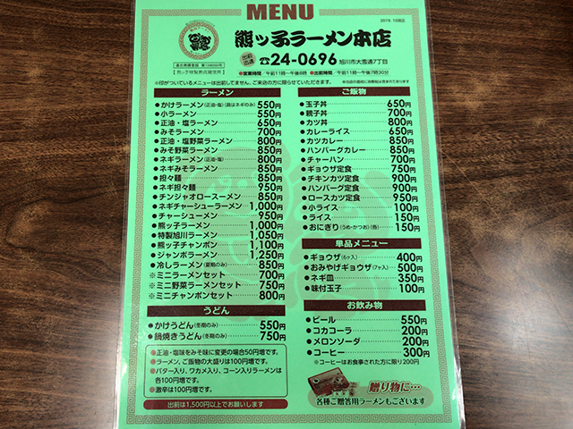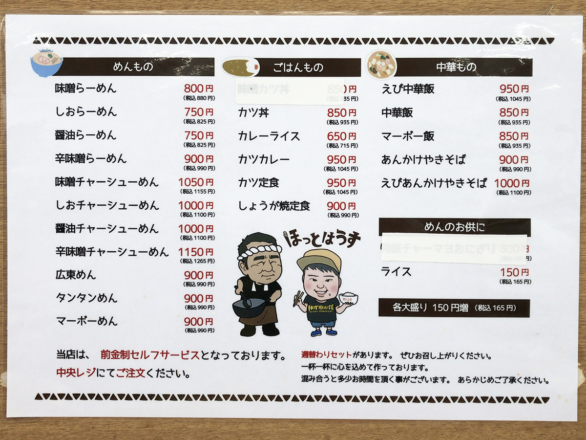 まずはメニュー表を。