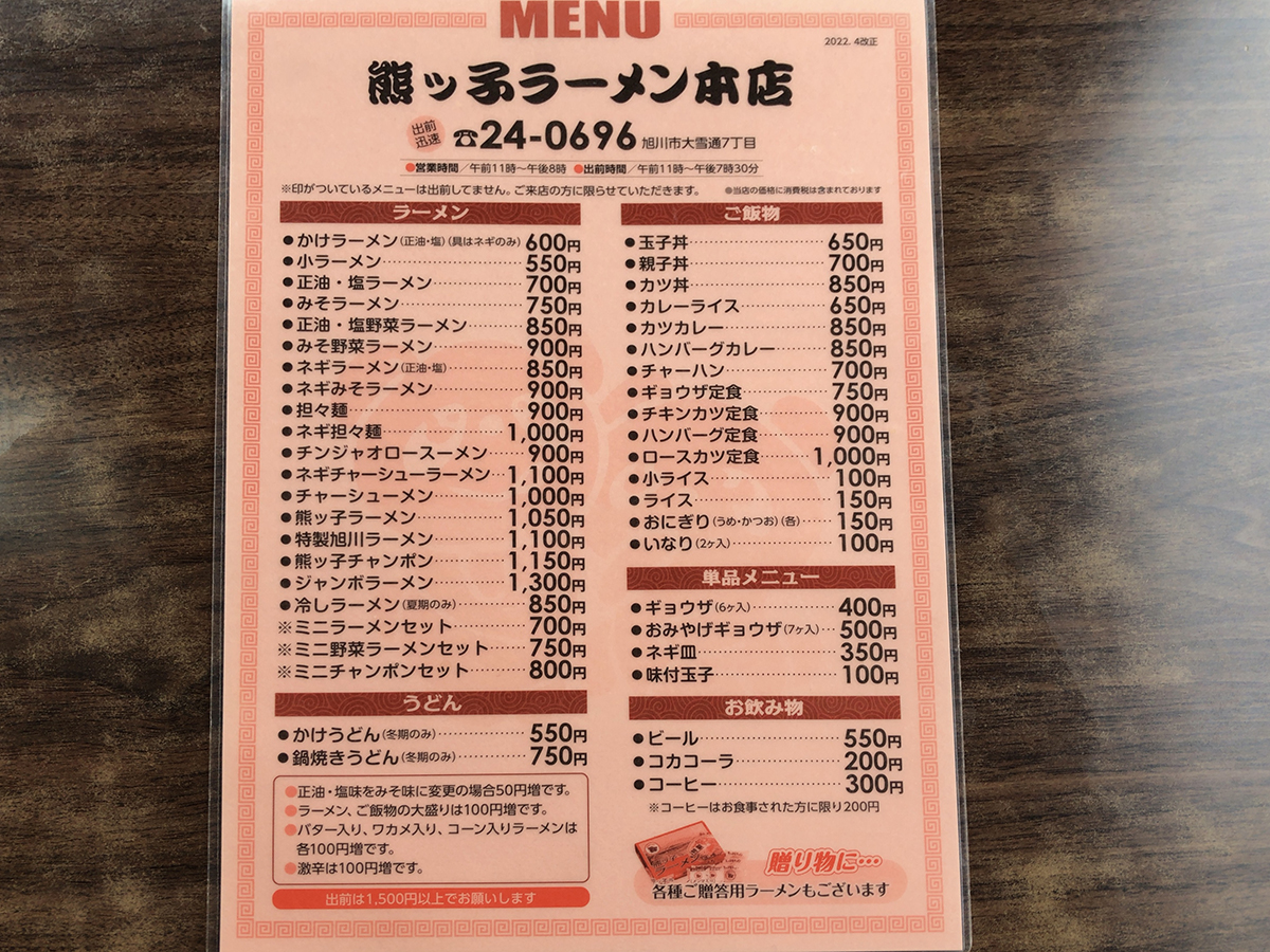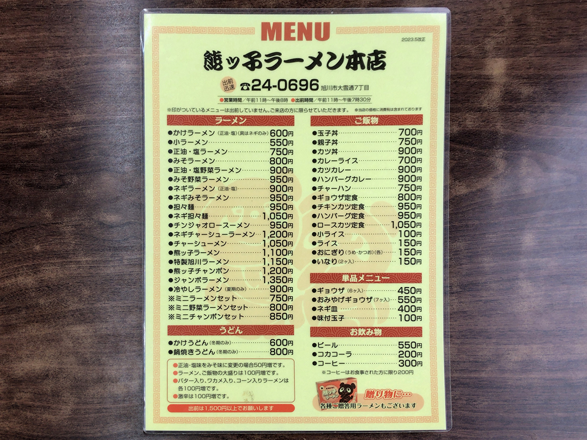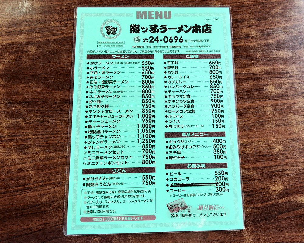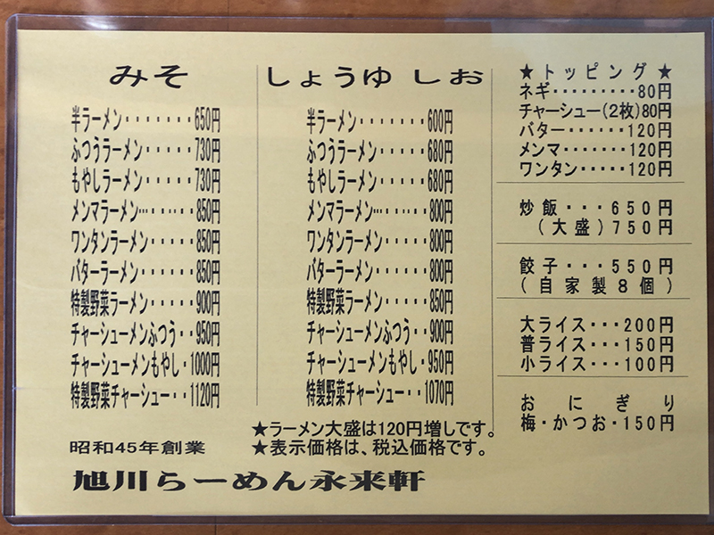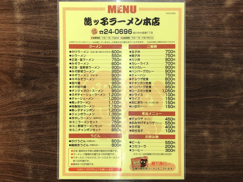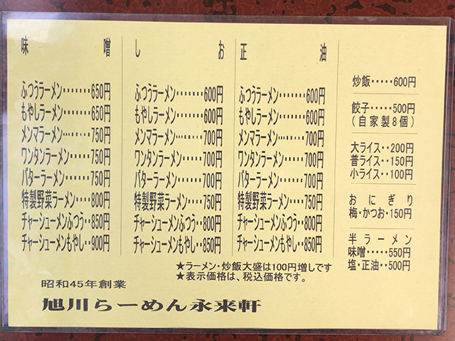 まずはメニュー表を。