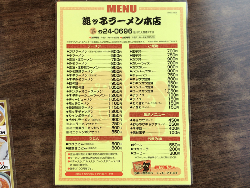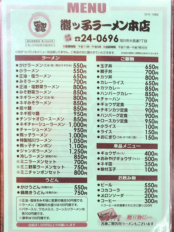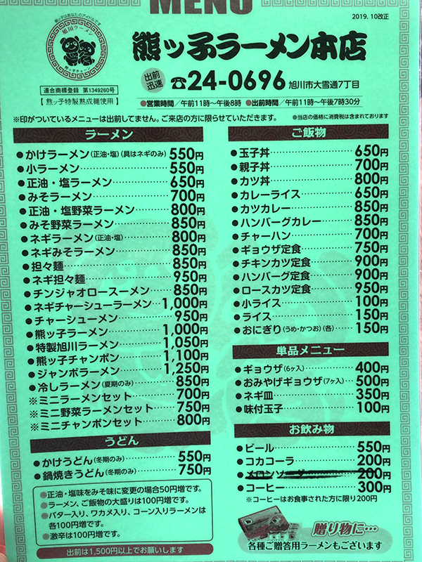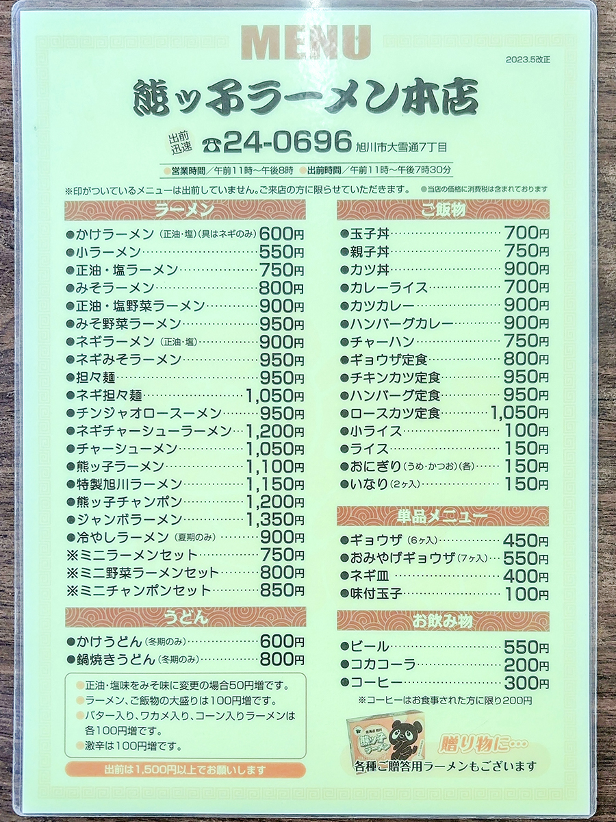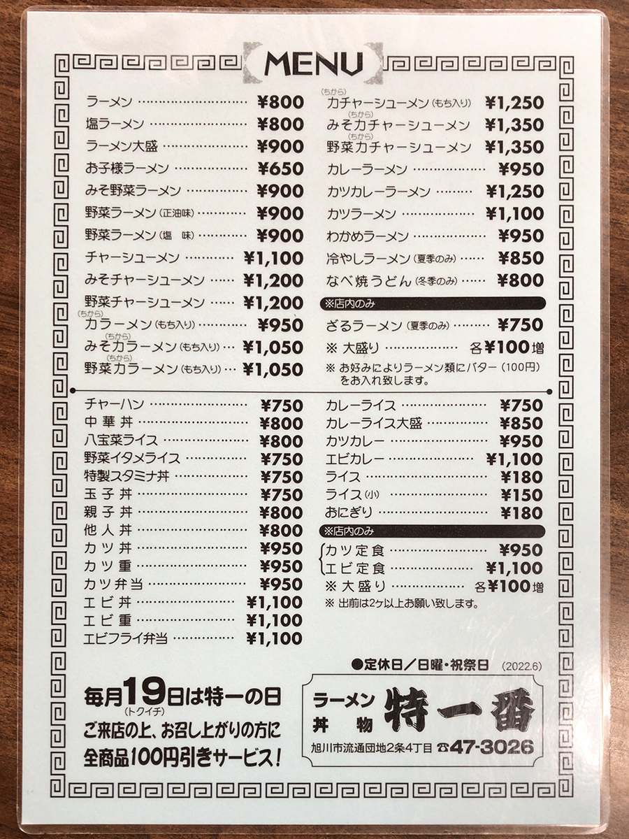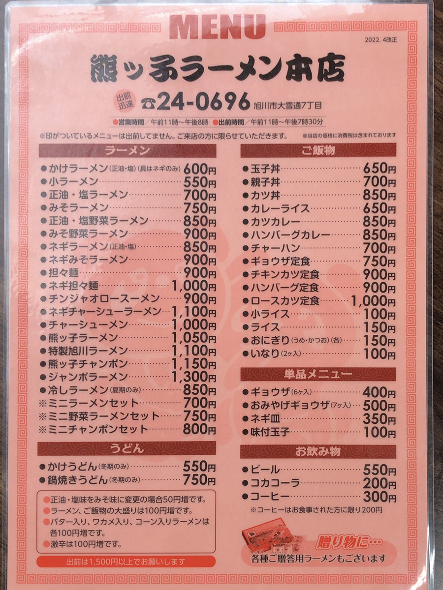 まずはメニュー表を。