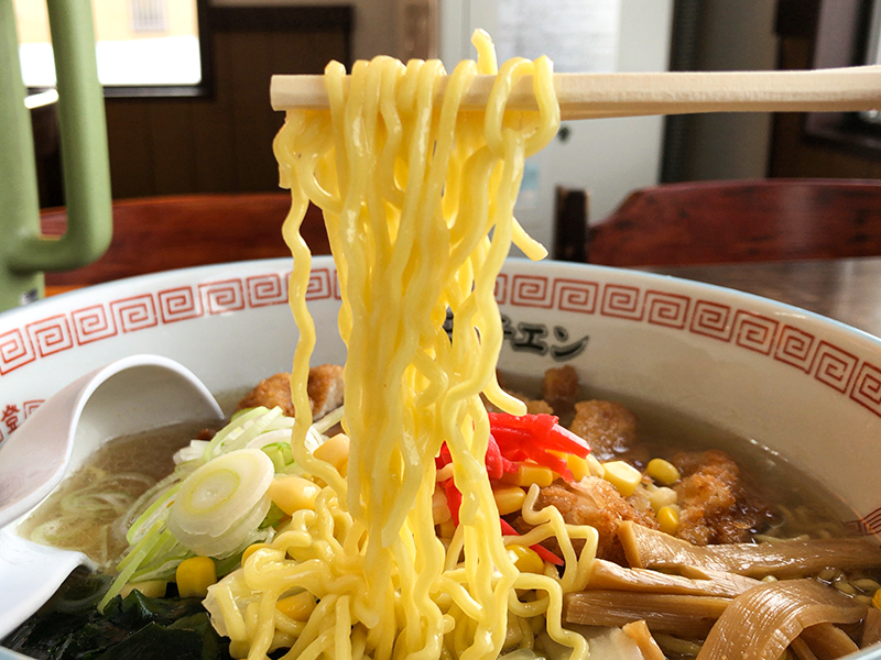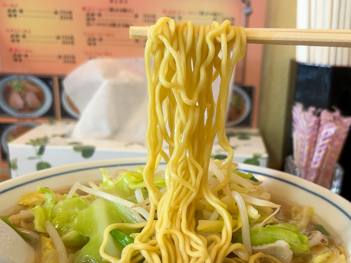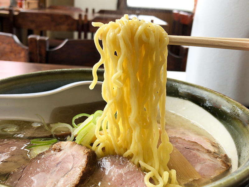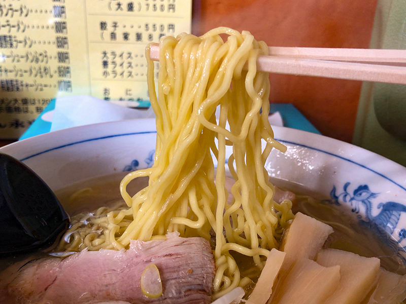 ちょうど良い茹で加減の細めな麺。