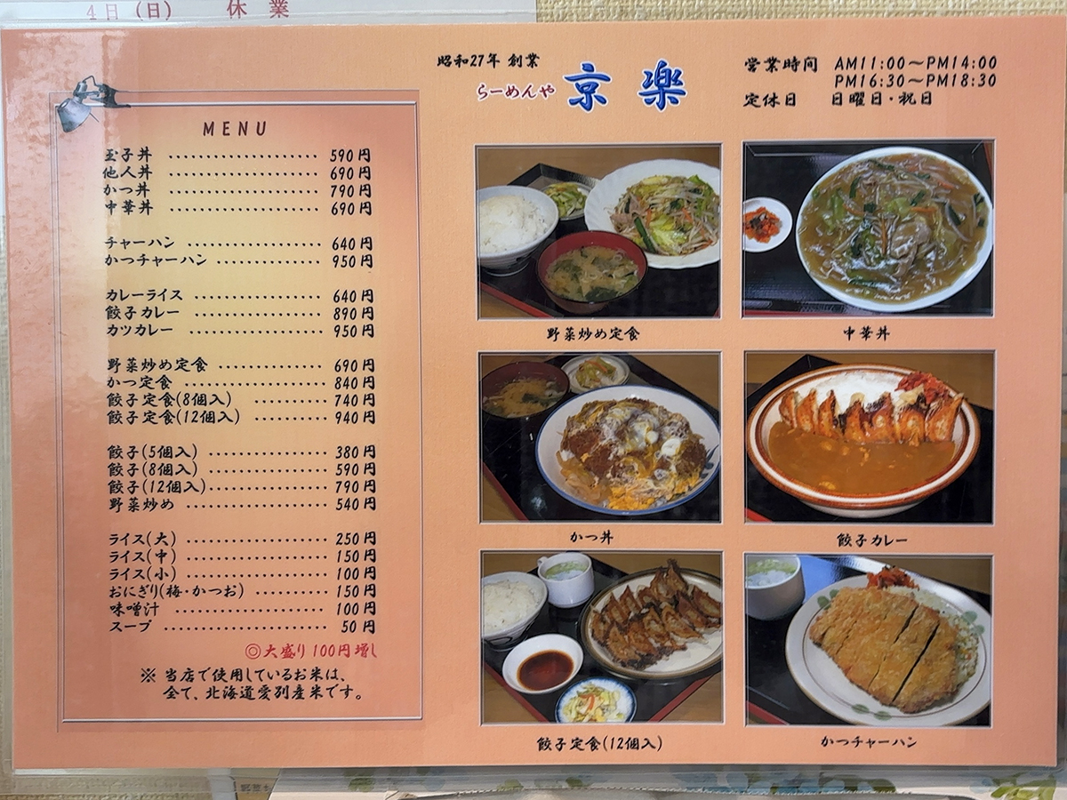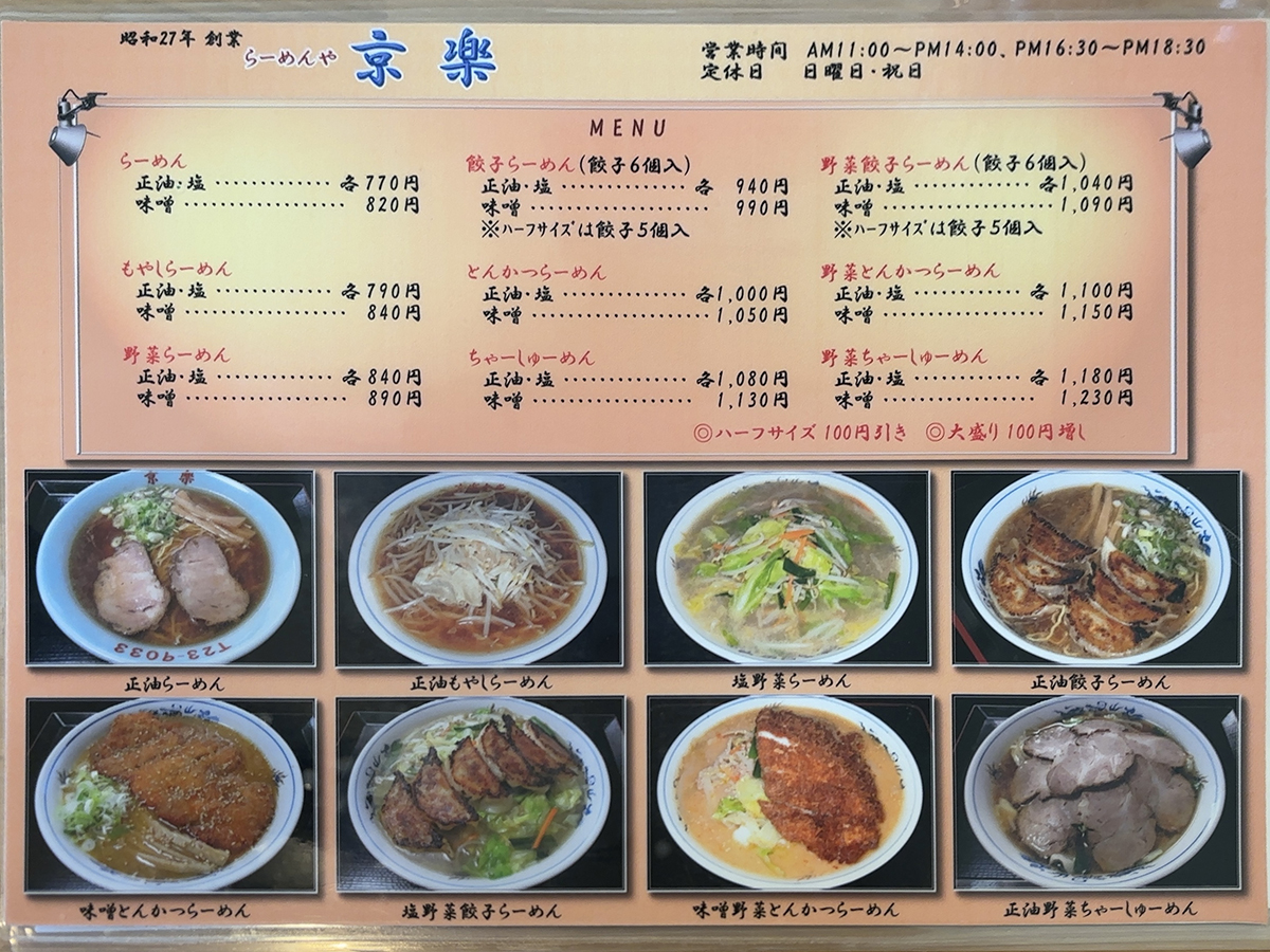 昭和27年創業 らーめんや京楽。