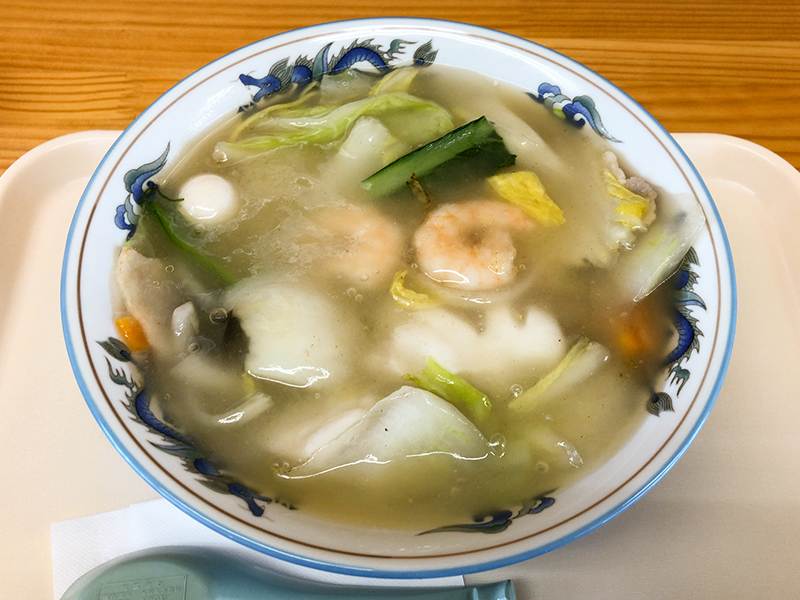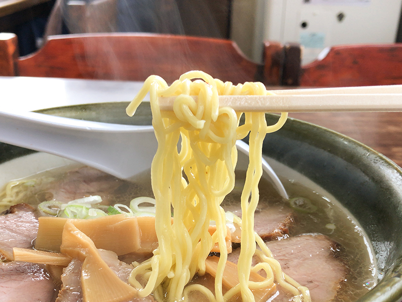 正油カドのないマイルドなスープはアツアツです。サラッとあっさり味。