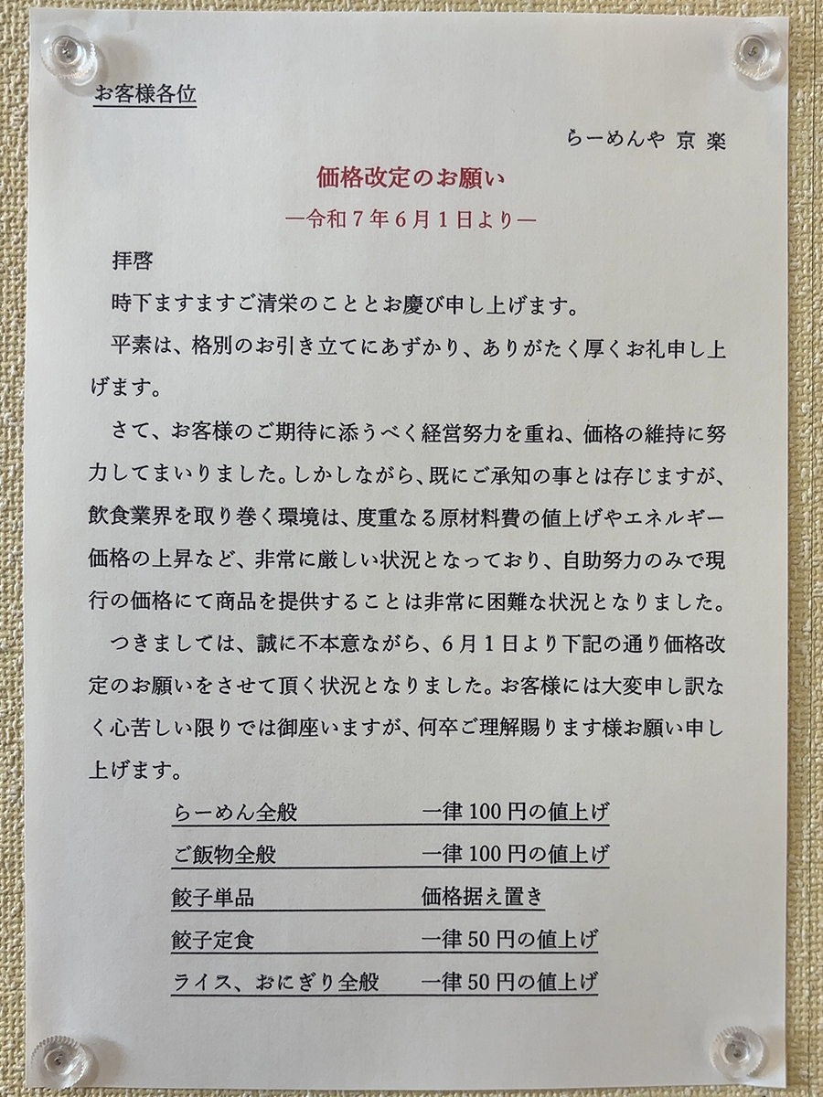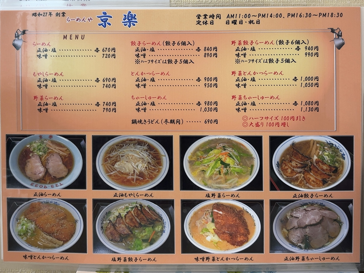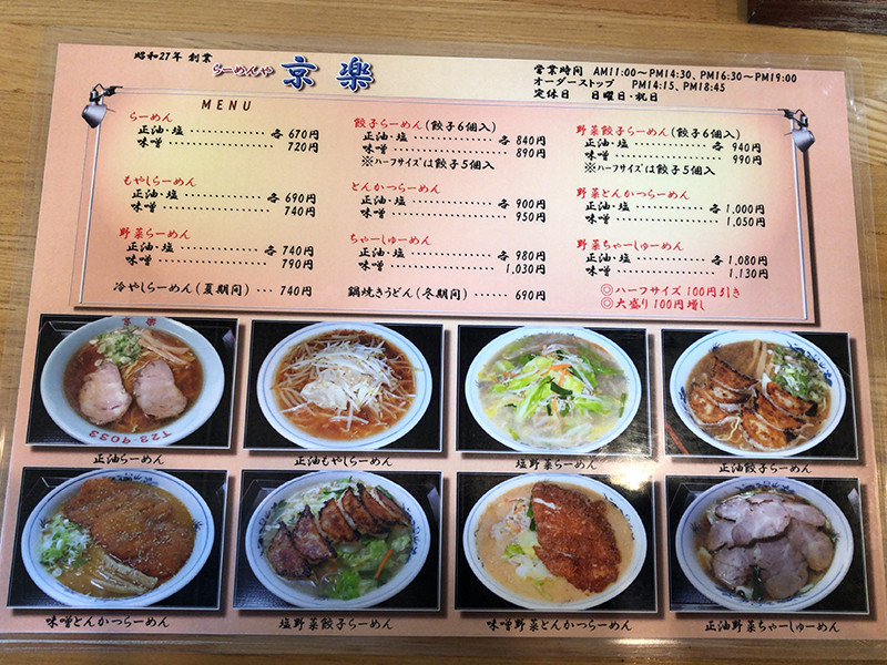 「らーめんや 京楽」