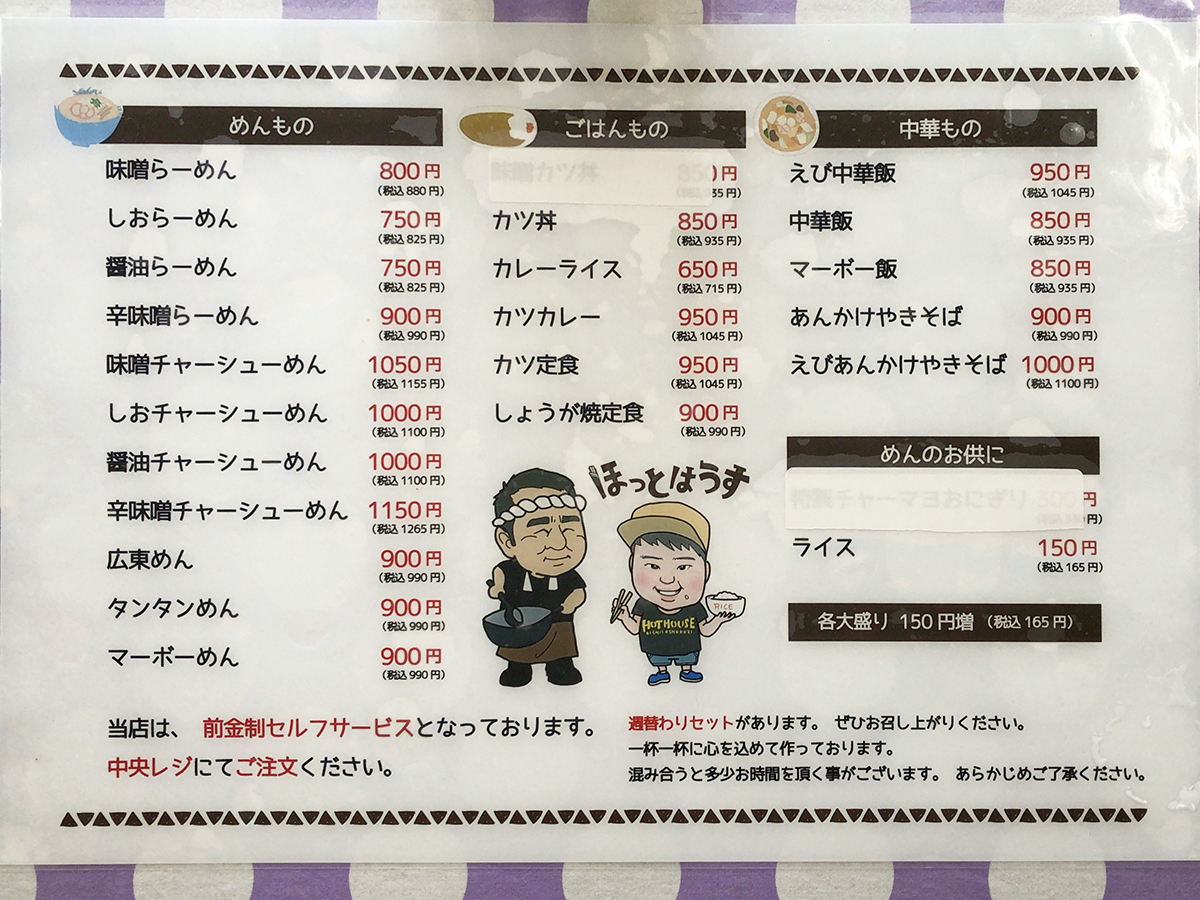 まずはメニュー表を確認してみましょう!