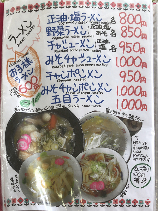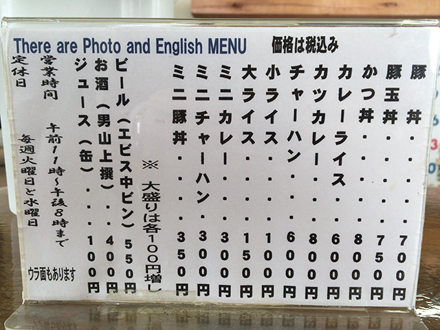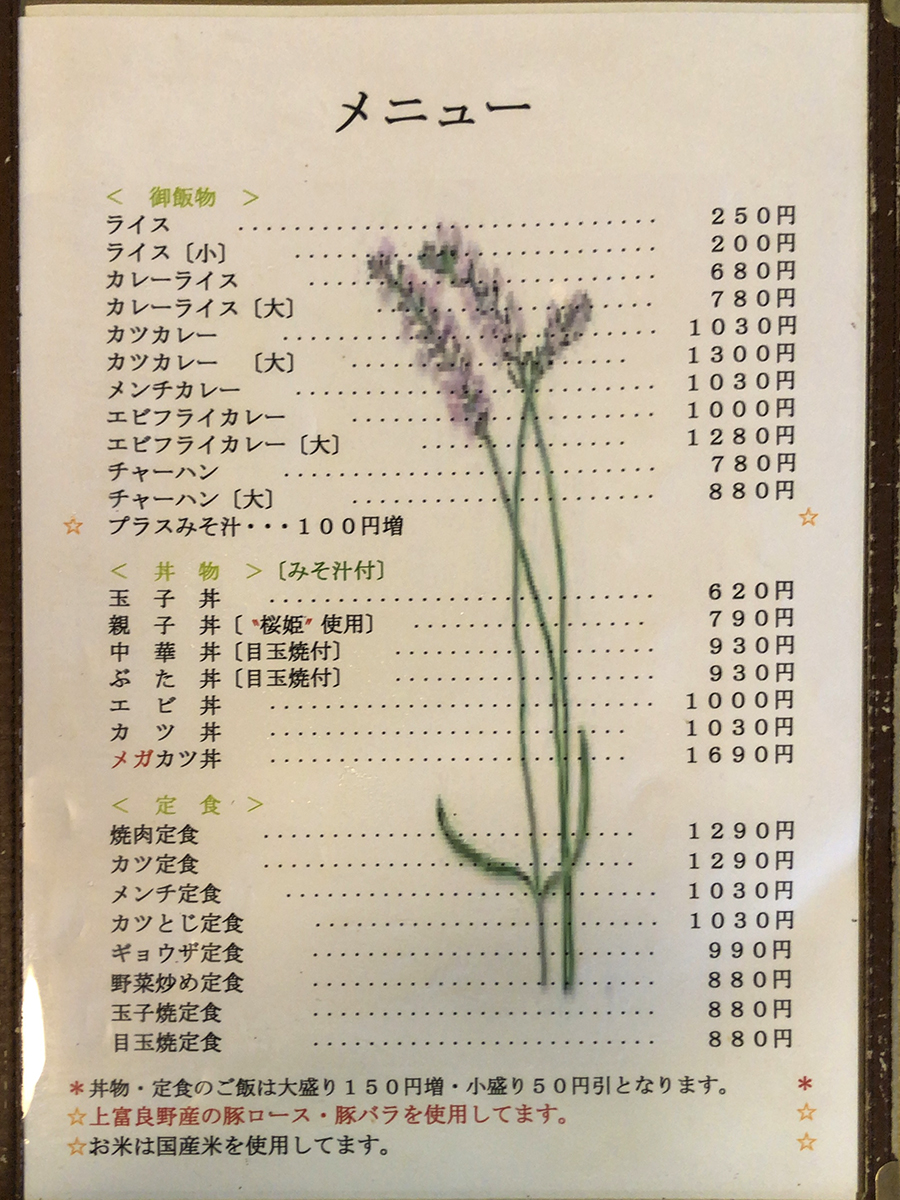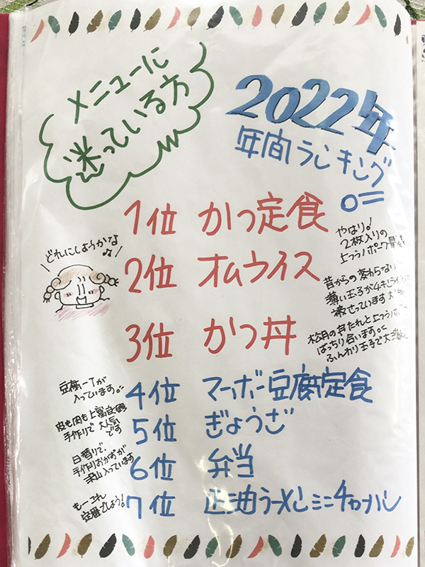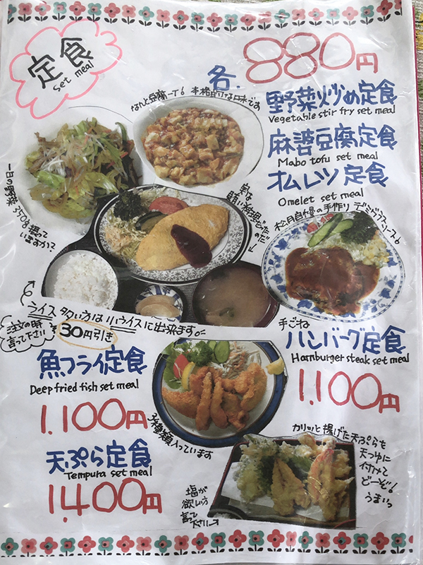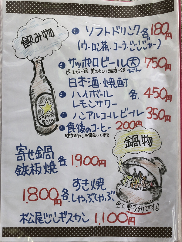 まずはメニュー表を確認してみましょう!