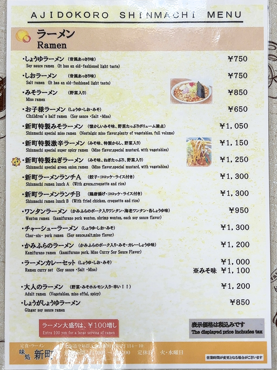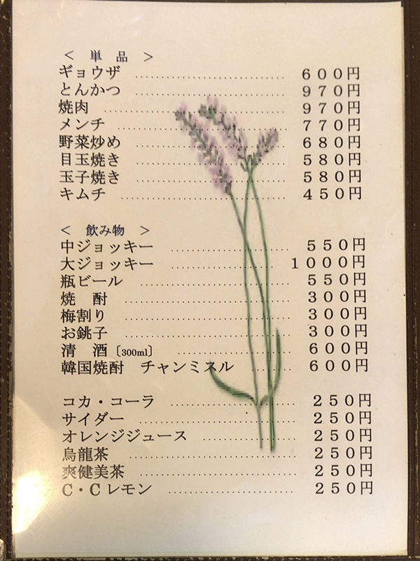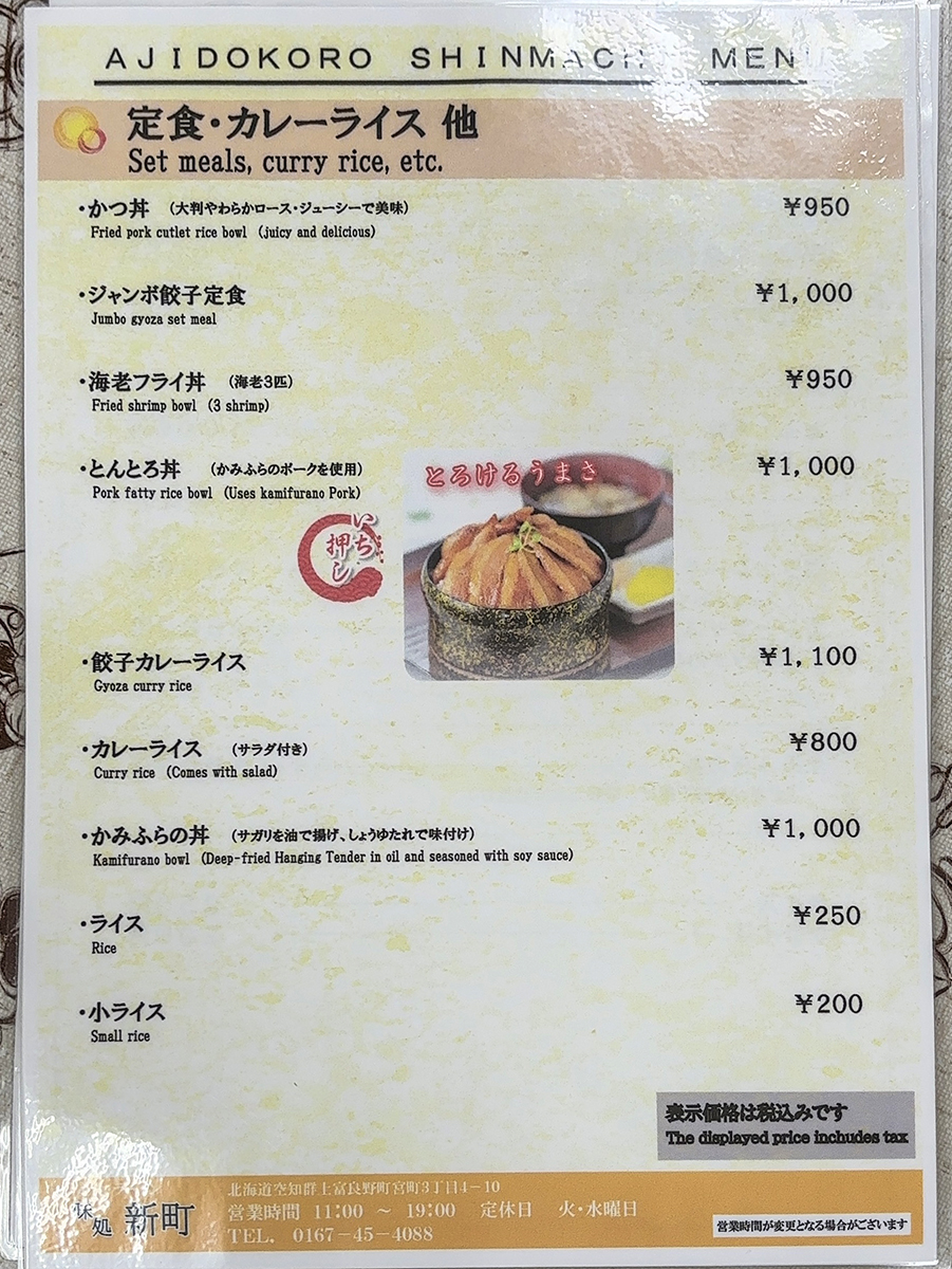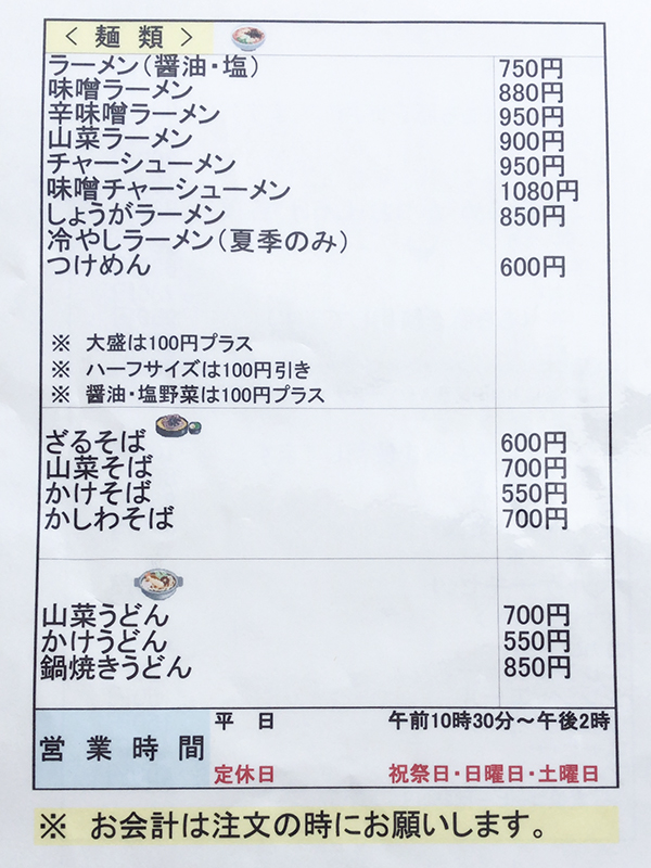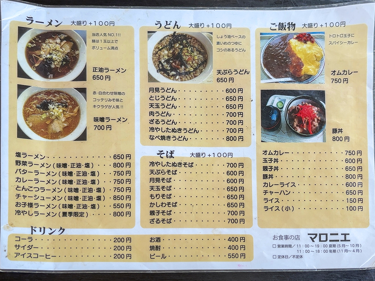 まずはメニュー表を確認してみましょう!