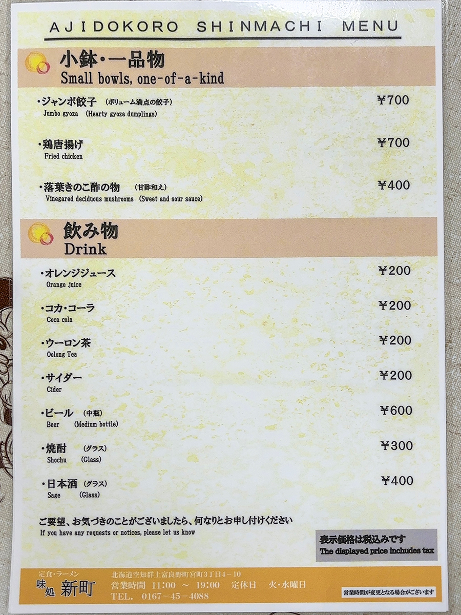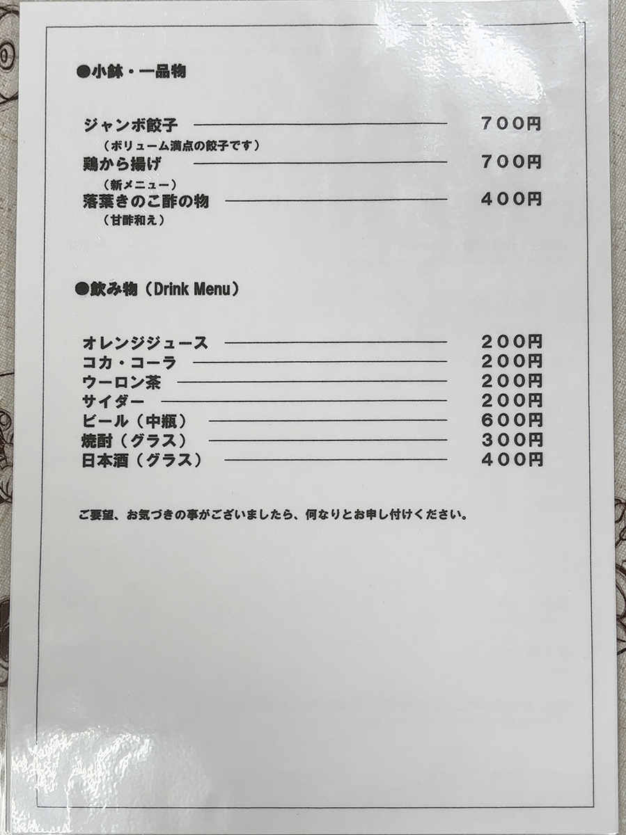 先代が網走の「浜長」で修行されていたそうです。当代は若い頃にホテルの中華厨房で修行していたとのこと。