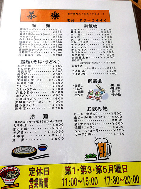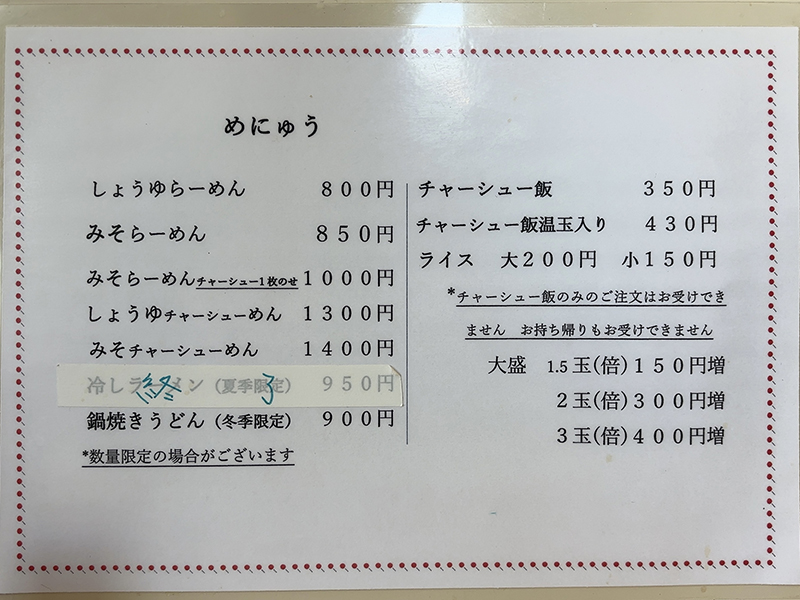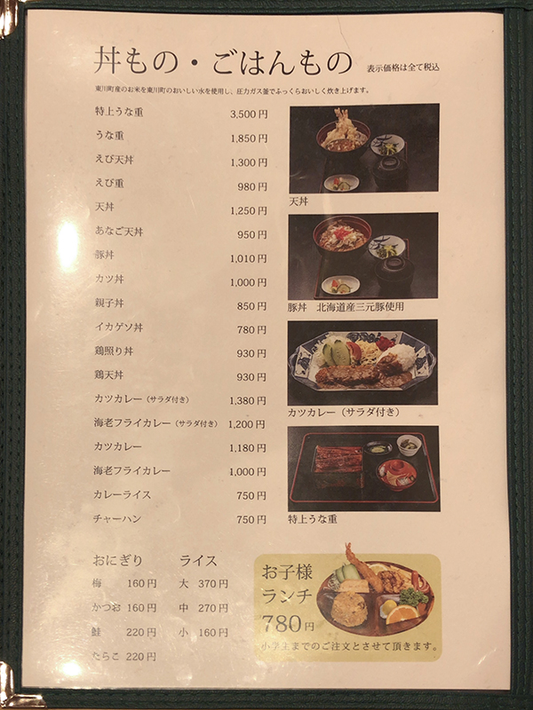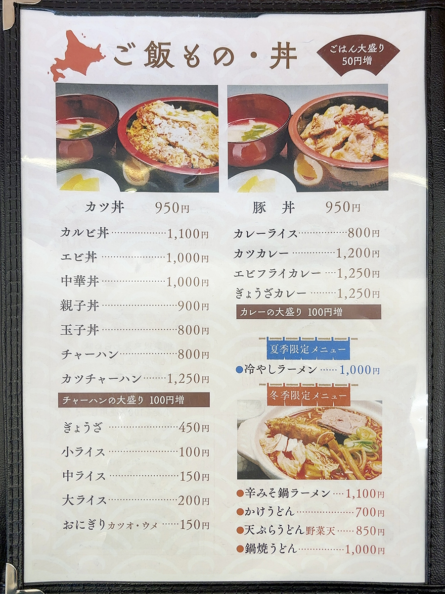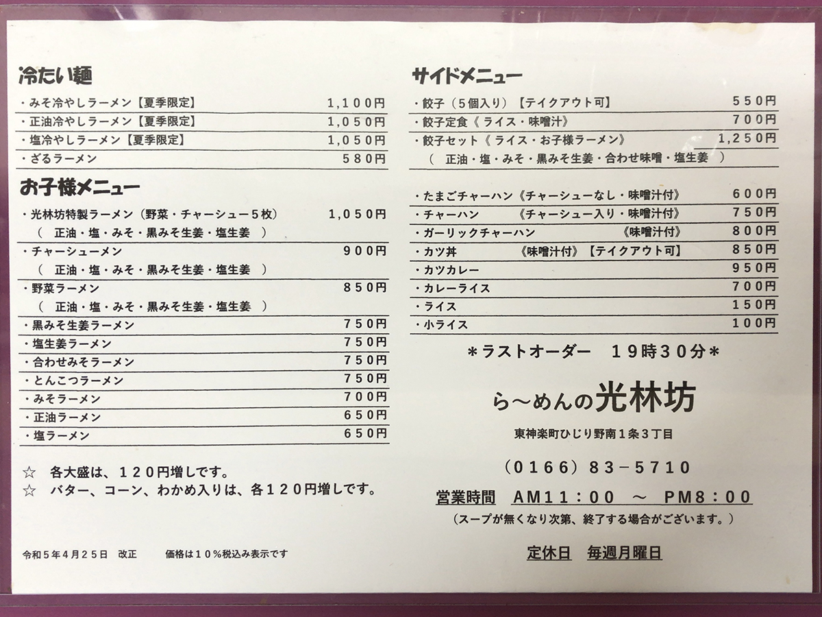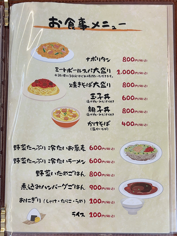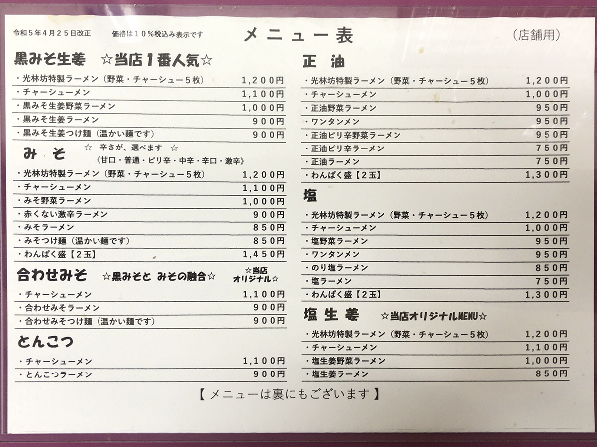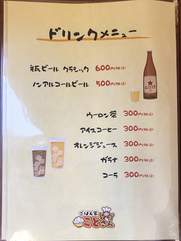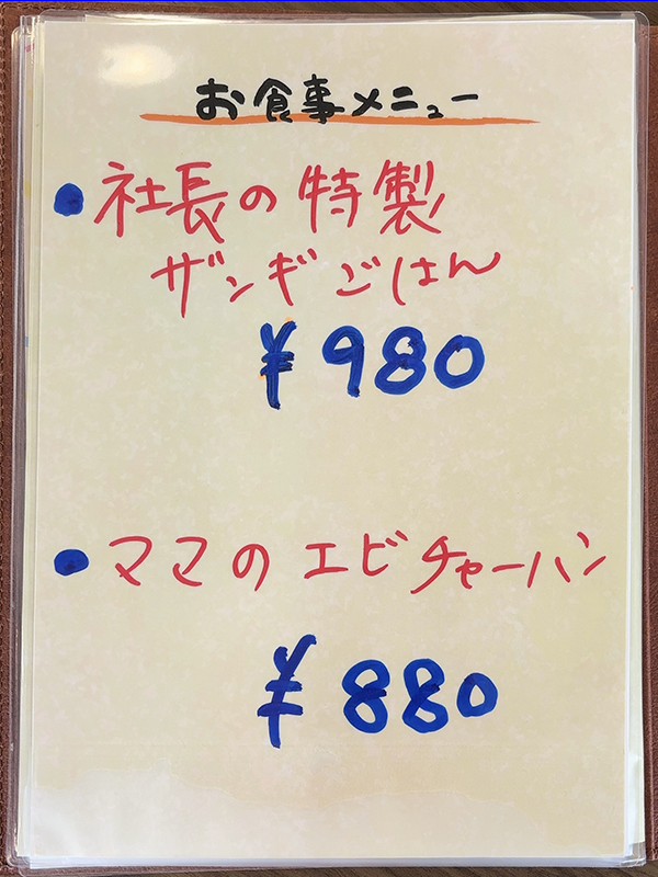 メニュー表右側。