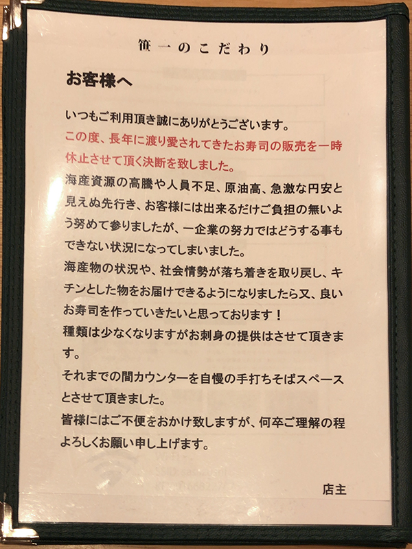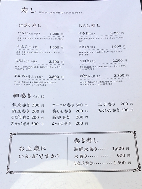 入口に掲げられているメニューです。