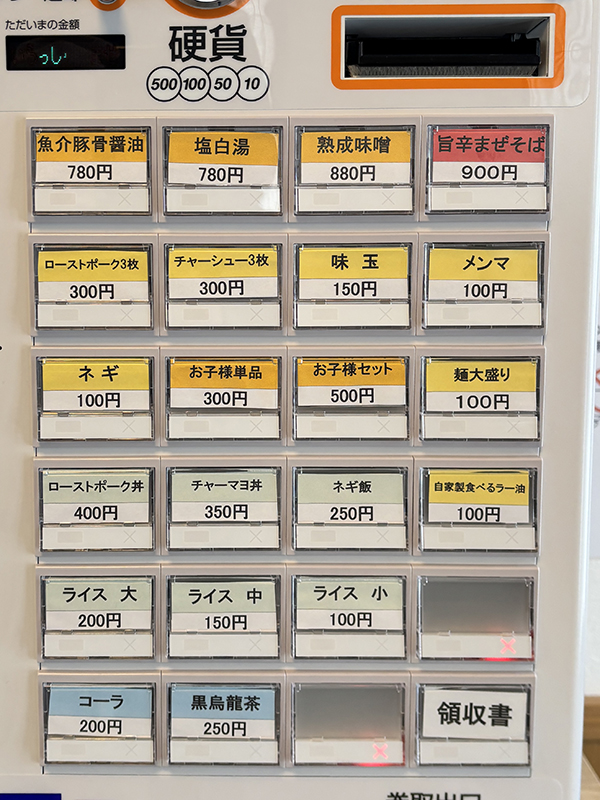 決まったら扉を開けて入店、券売機で食券を買います。