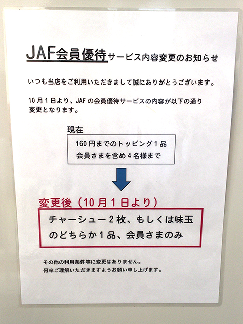 10/1からJAF会員優待が変更。