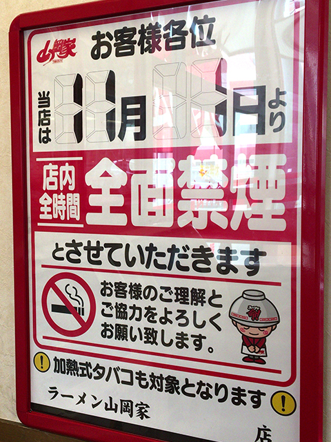 今までは11:00〜15:00のみ店内禁煙でした。