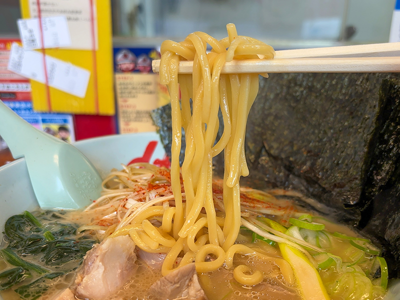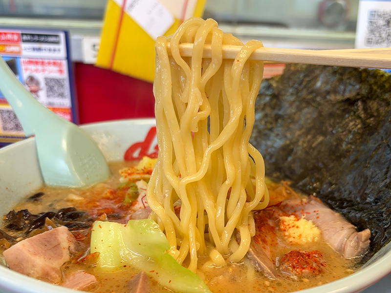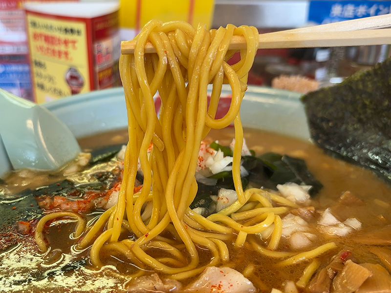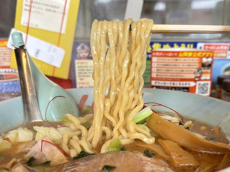 少し甘めのスープ。山岡家の限定はとにかく甘甘じょっぱい!という印象が長らくありましたが、ここ1〜2年?は甘ったるくなくて良いですねー。