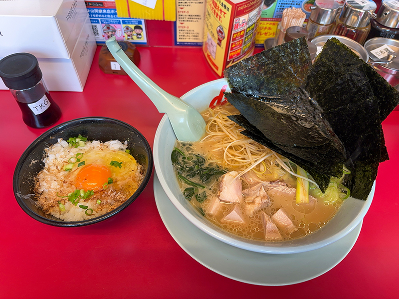 カレーラーメンの新しい夜明けを告げる山岡家期間限定「特製カレーとんこつラーメン」、玉子かけご飯セットでどうぞ♪