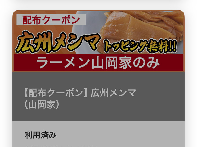 アプリクーポンのみではないかと思いますが「広州メンマ」と表記されています。