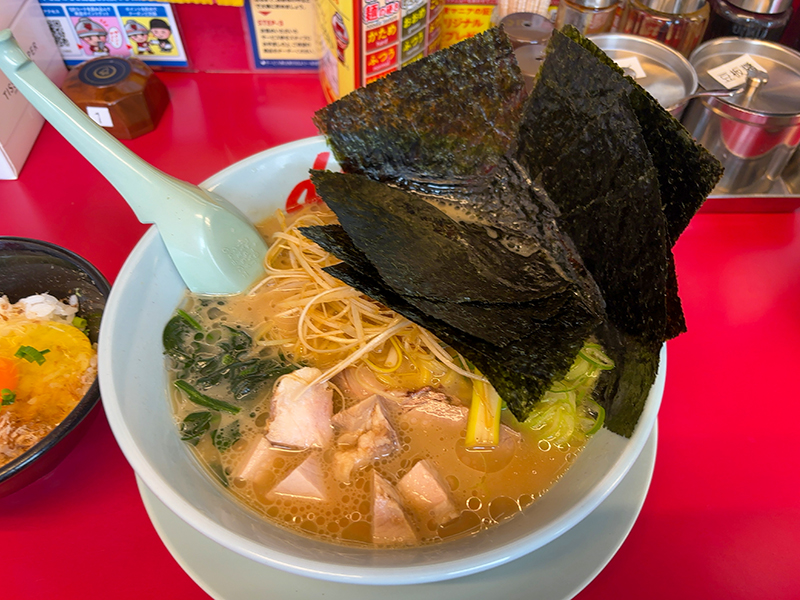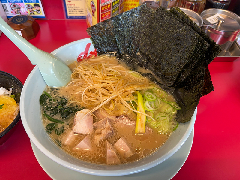 醤油(サービス券10枚消費)、アプリクーポンの薬味ねぎ+ランククーポンのコロチャー、そして期間限定トッピングのもやし(140円)です。