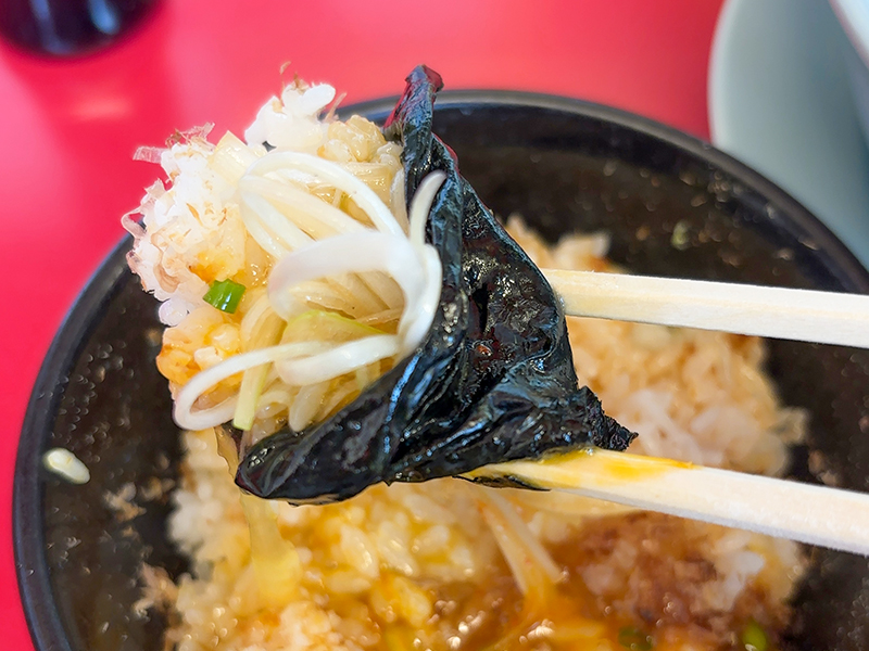 焦がし醤油のコクがあります。個人的にマー油はあまり好みませんが邪魔にはなりません。