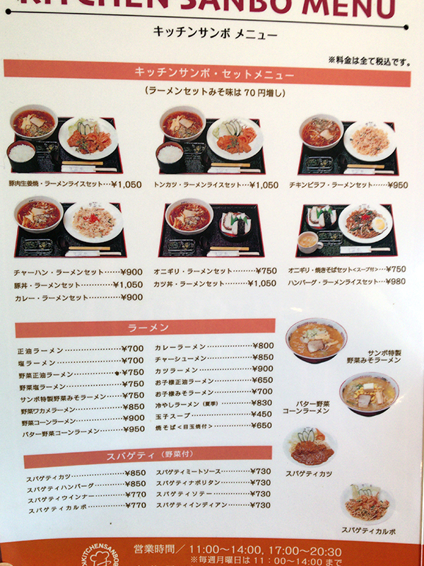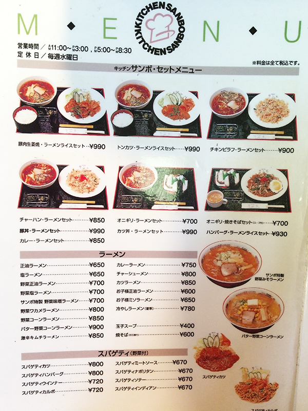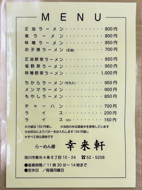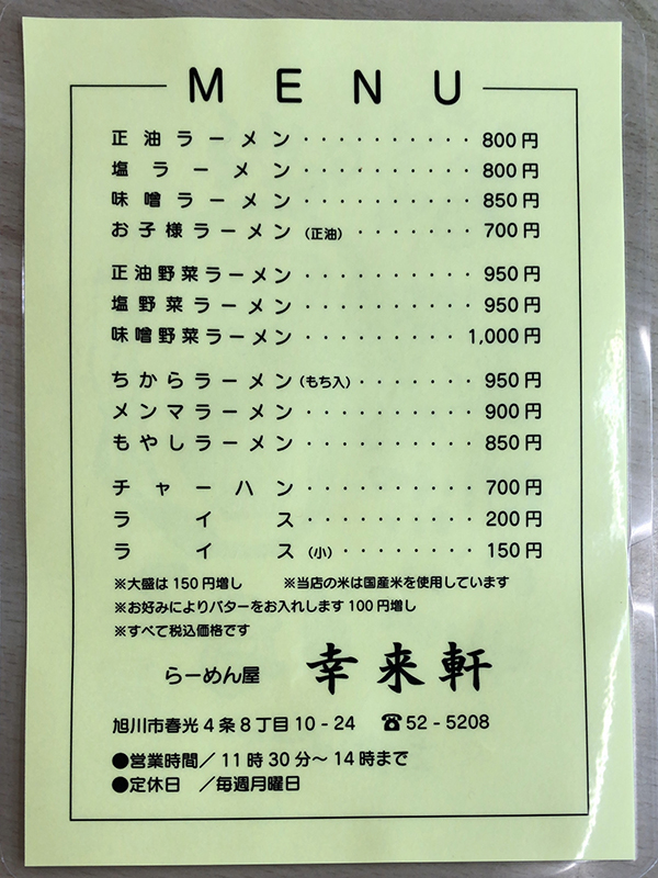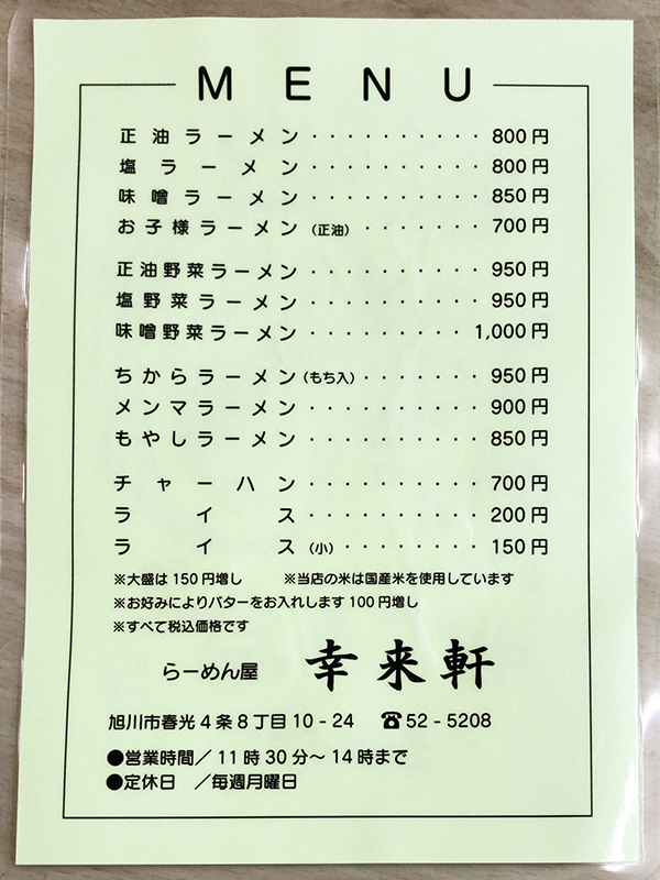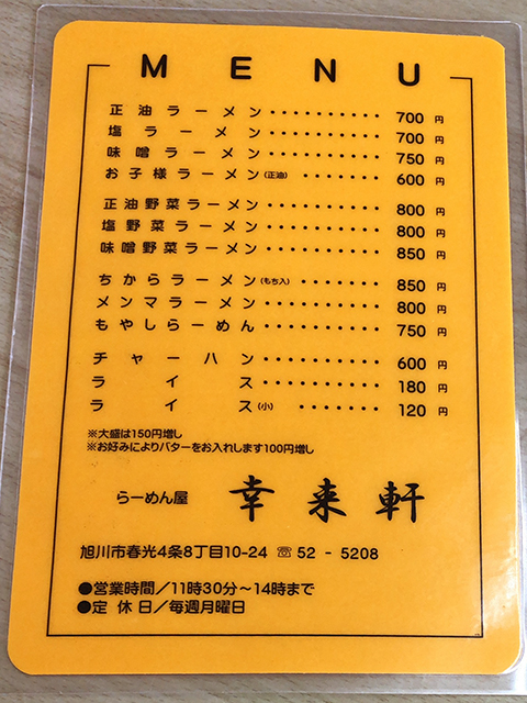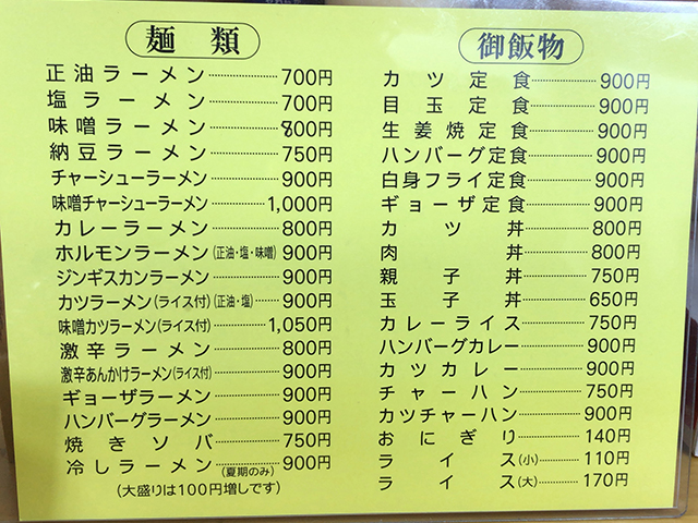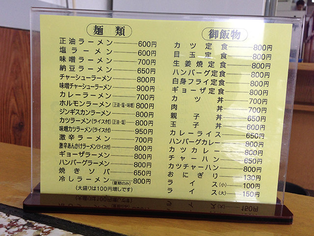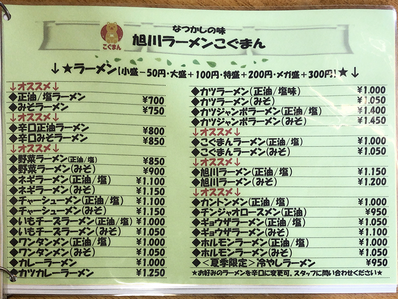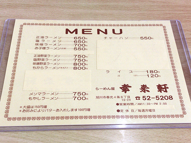 まずはメニュー表を確認してみましょう!