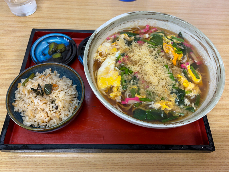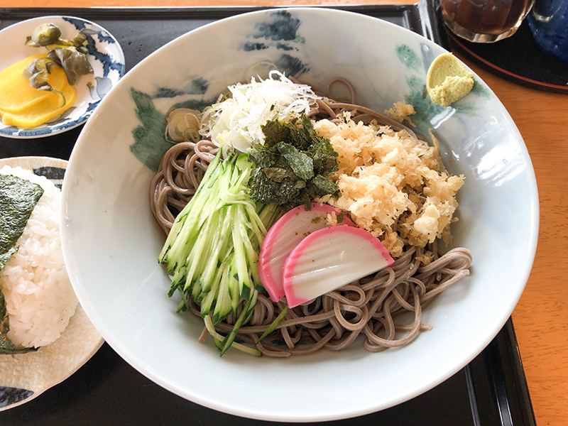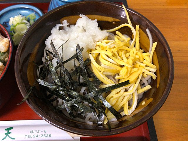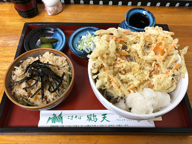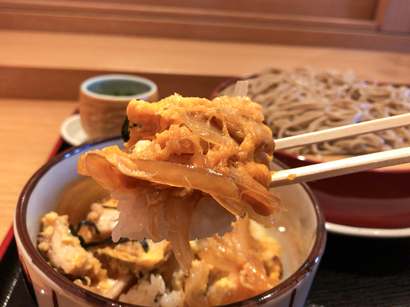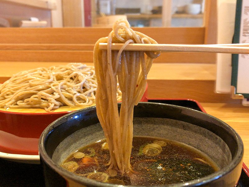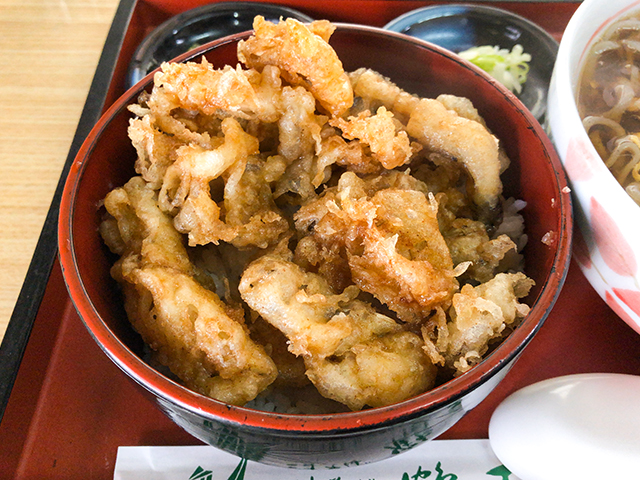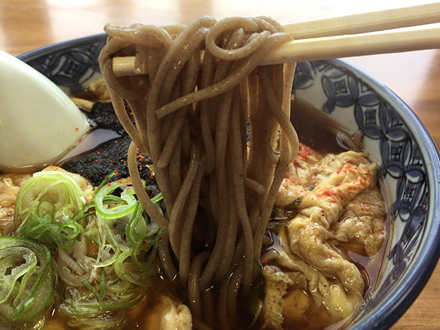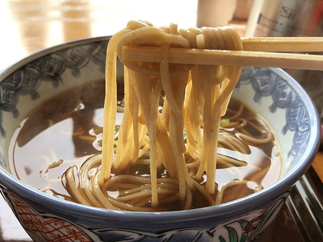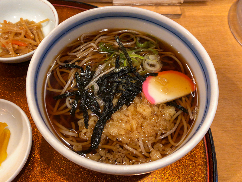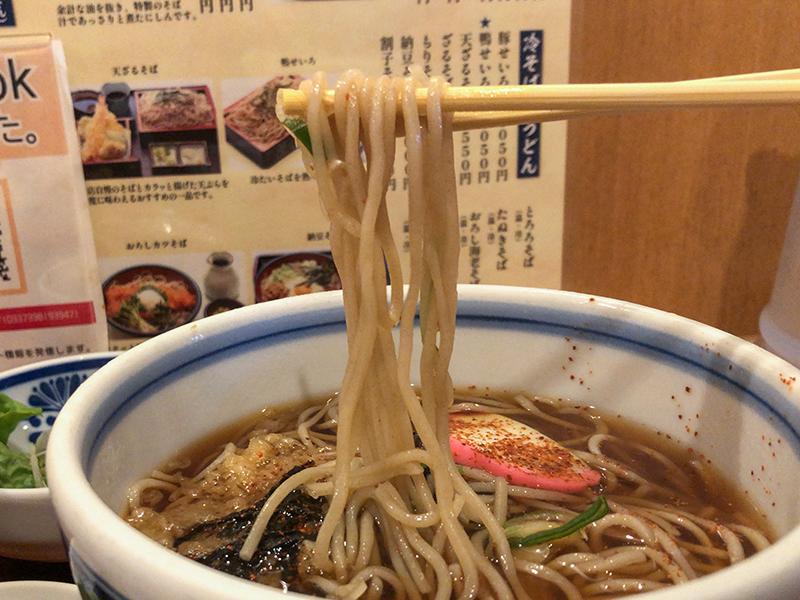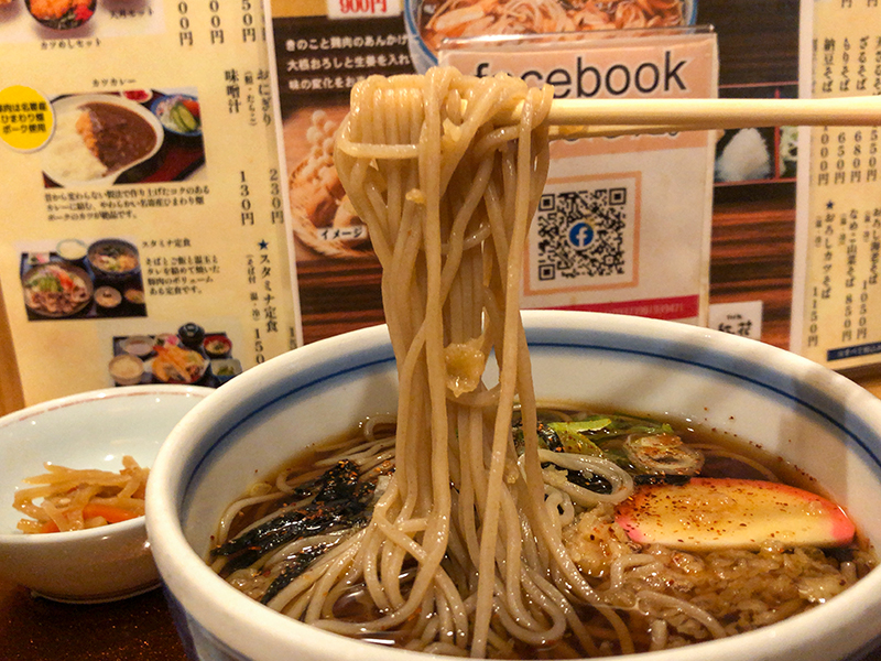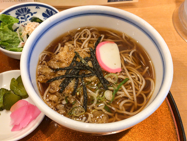 そばは柔らかめ。つゆはやや濃口でダシがよく効いています。そこに天かすの油と香ばしさが溶け込んで美味〜い